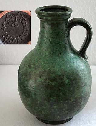 E. & C. Carstens Tönnishof, schöne alte grüne Keramik Krug Vase 1960er-1970er Jahre