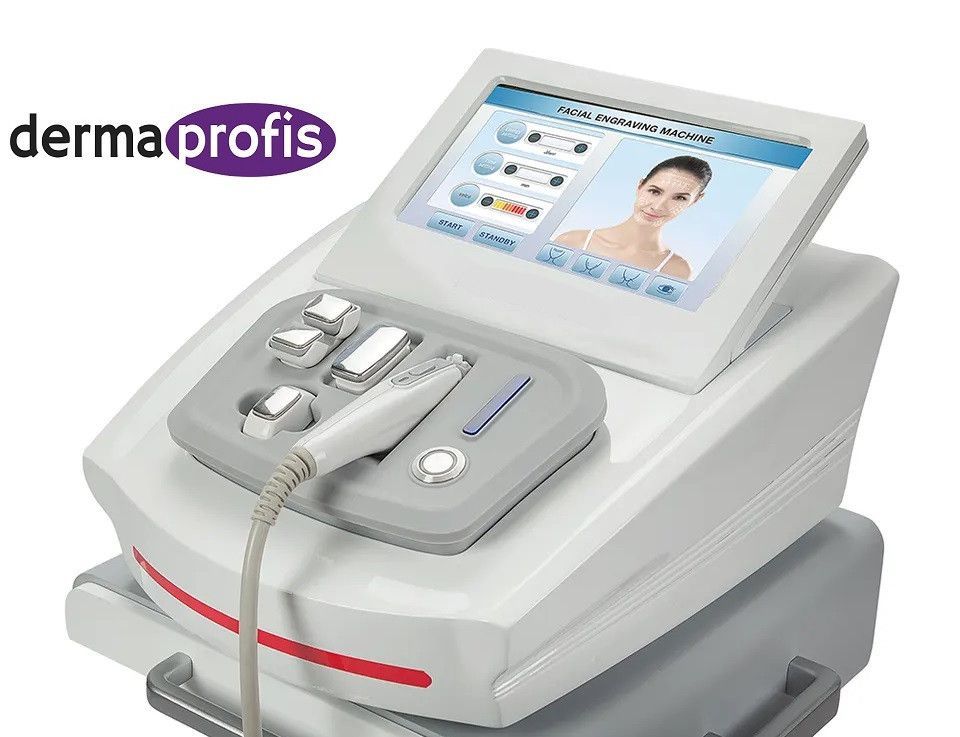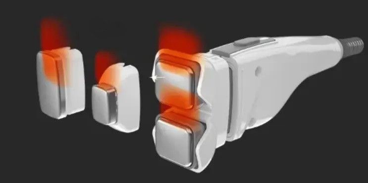 Radiofrequenz Shape Lifting Gerät für Gesicht, Doppel Kinn,Hals und Dekollete Ein Handstück mit drei wechselbaren Radiofrequenz Lifting Shape Aufsätzen Falten, schlaffe Haut, doppel Kinn, Konturen Vier Programme im Display Tiefe 02mm-4.5mm 5MHZ Display Farb Touch Screen ca. 22cm Lieferung mit weißem