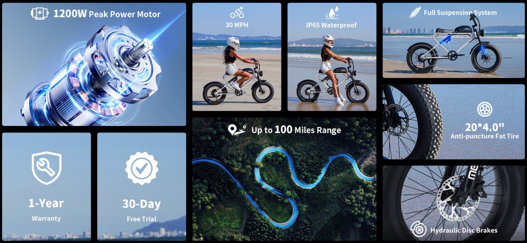 E-Mountainbike Elektro-Offroad-Fahrrad mit All Terrain Reifen 750W Motor 48V20Ah Akku