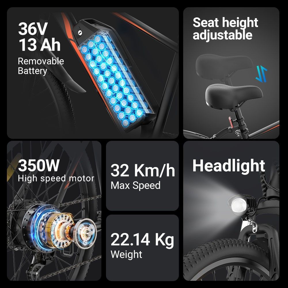 E-MTB E-Mountainbike abnehmbarer 36V 13 Ah Akku Shimano 7-Gang 27 Zoll Elektrofahrrad