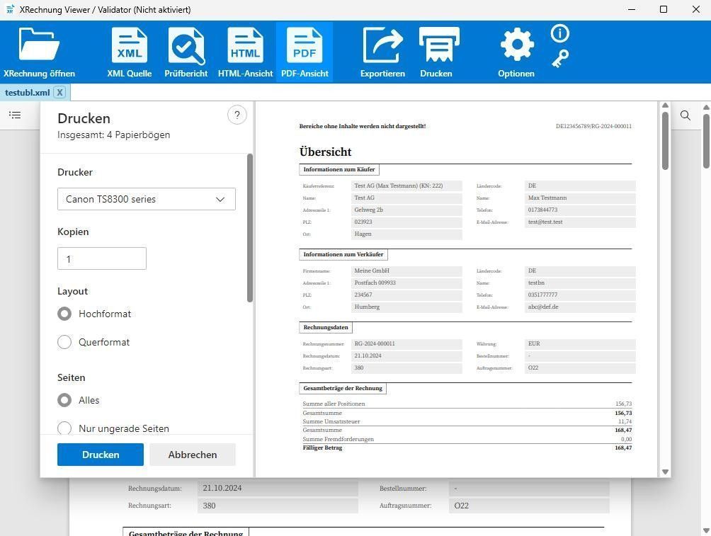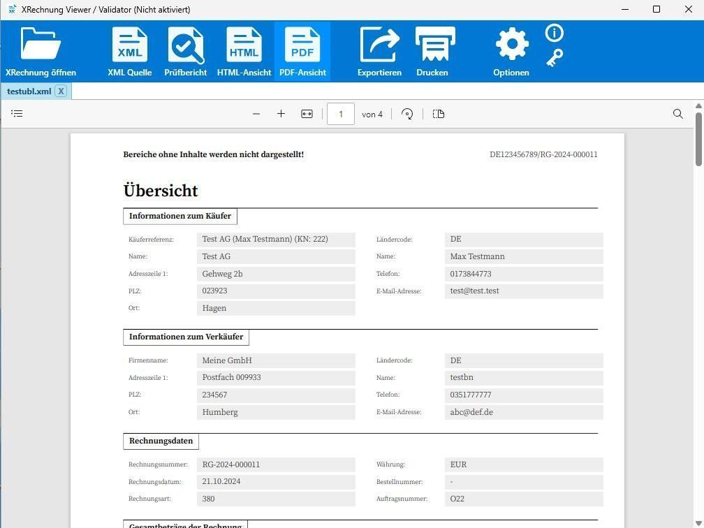 E-Rechnung Viewer - Anzeigen - �berpr�fen - Exportieren -PC Download Version