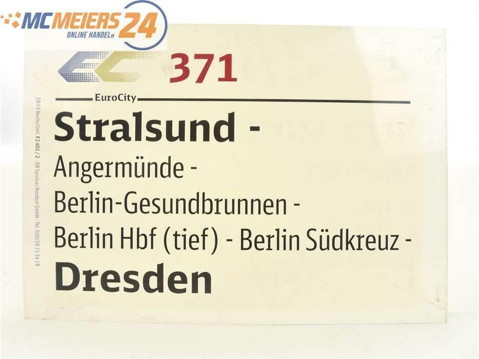E244 Zuglaufschild Waggonschild EuroCity EC 371 Stralsund - Berlin - Dresden