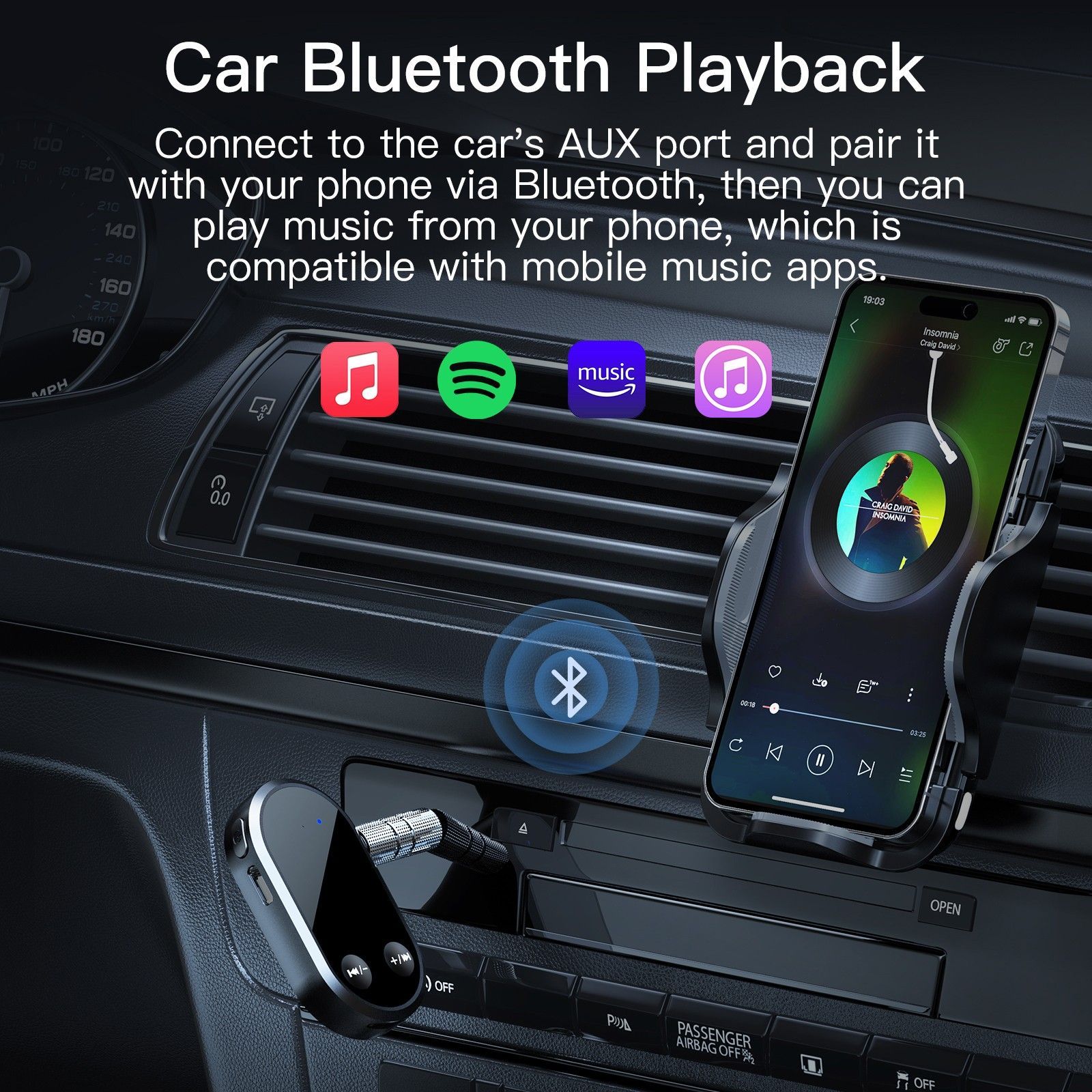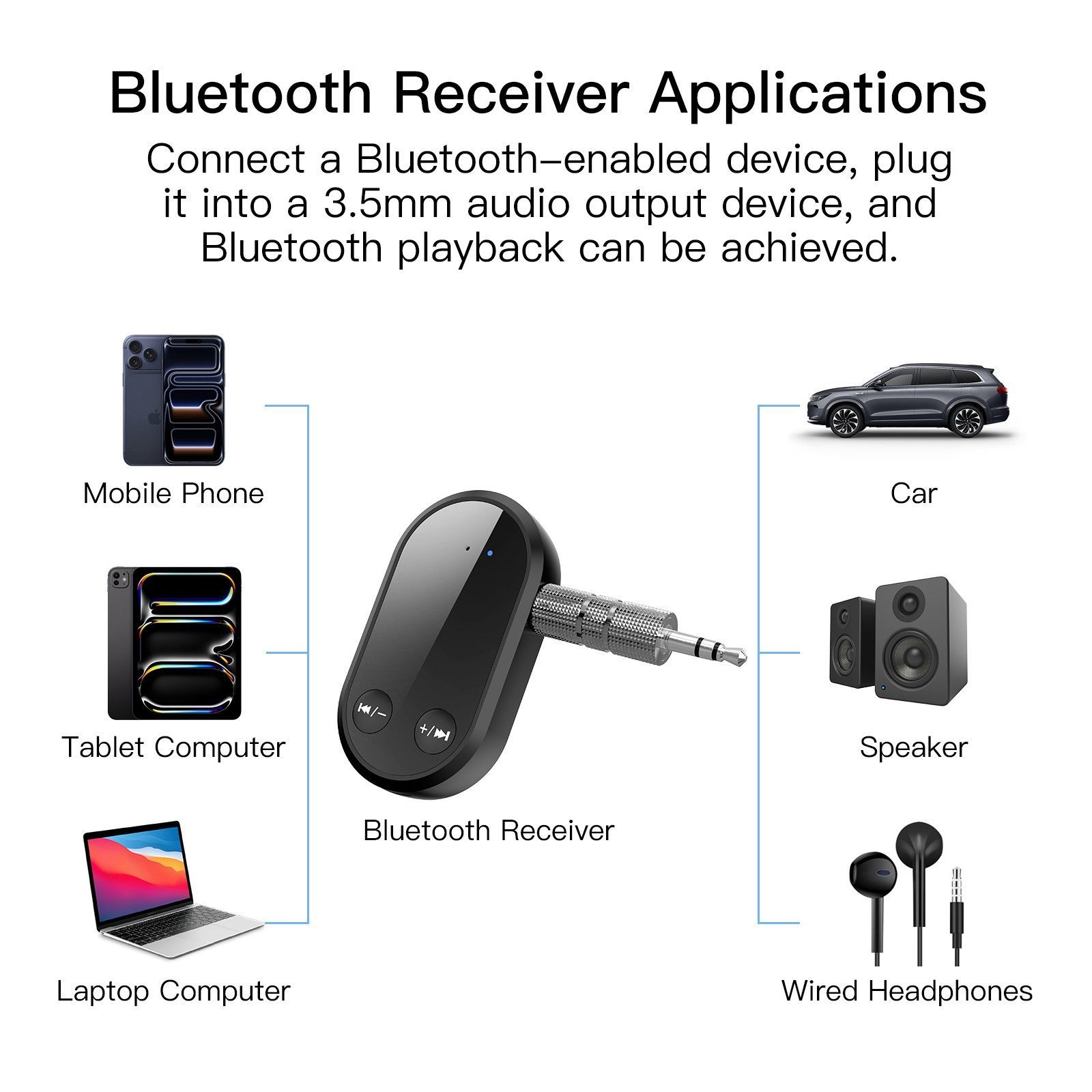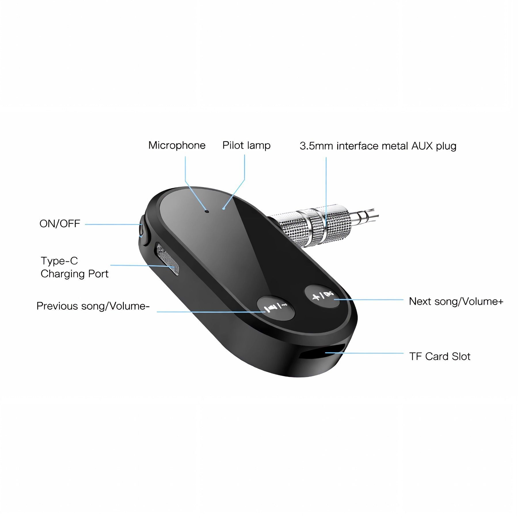 E25C 2in1 Bluetooth 5.0 Audio Empfänger AUX 3,5mm Adapter mit TF Slot, Kabellos Musik