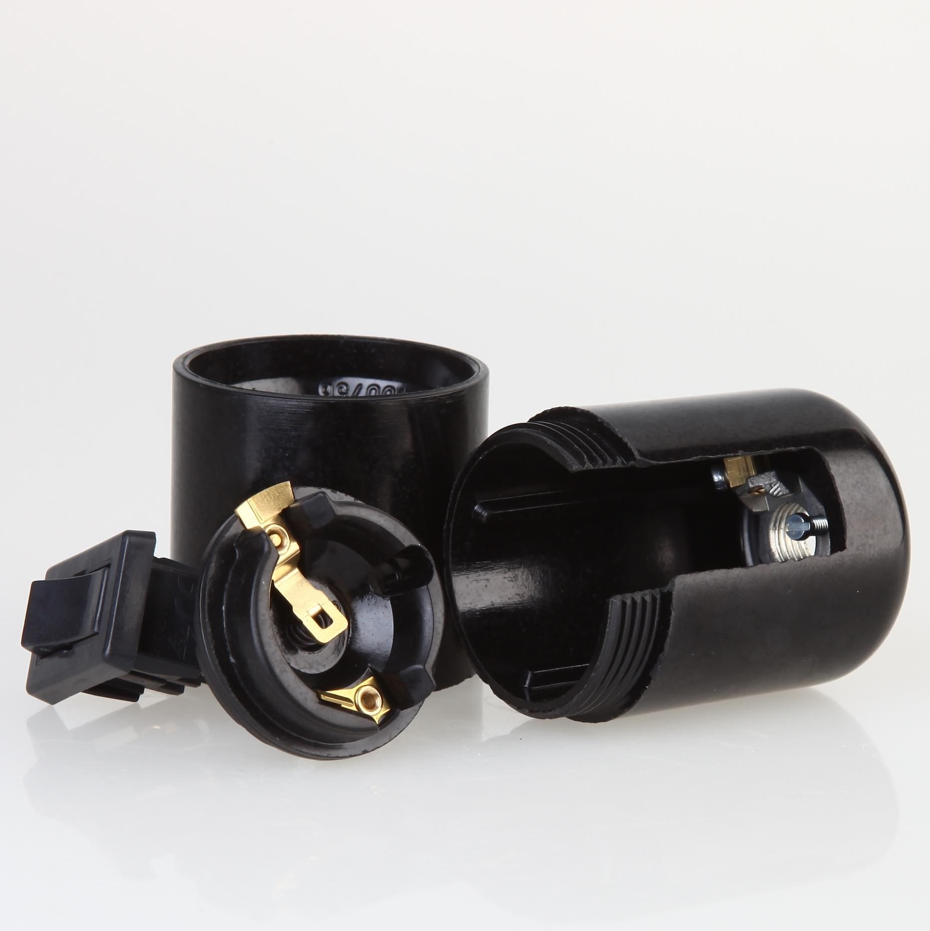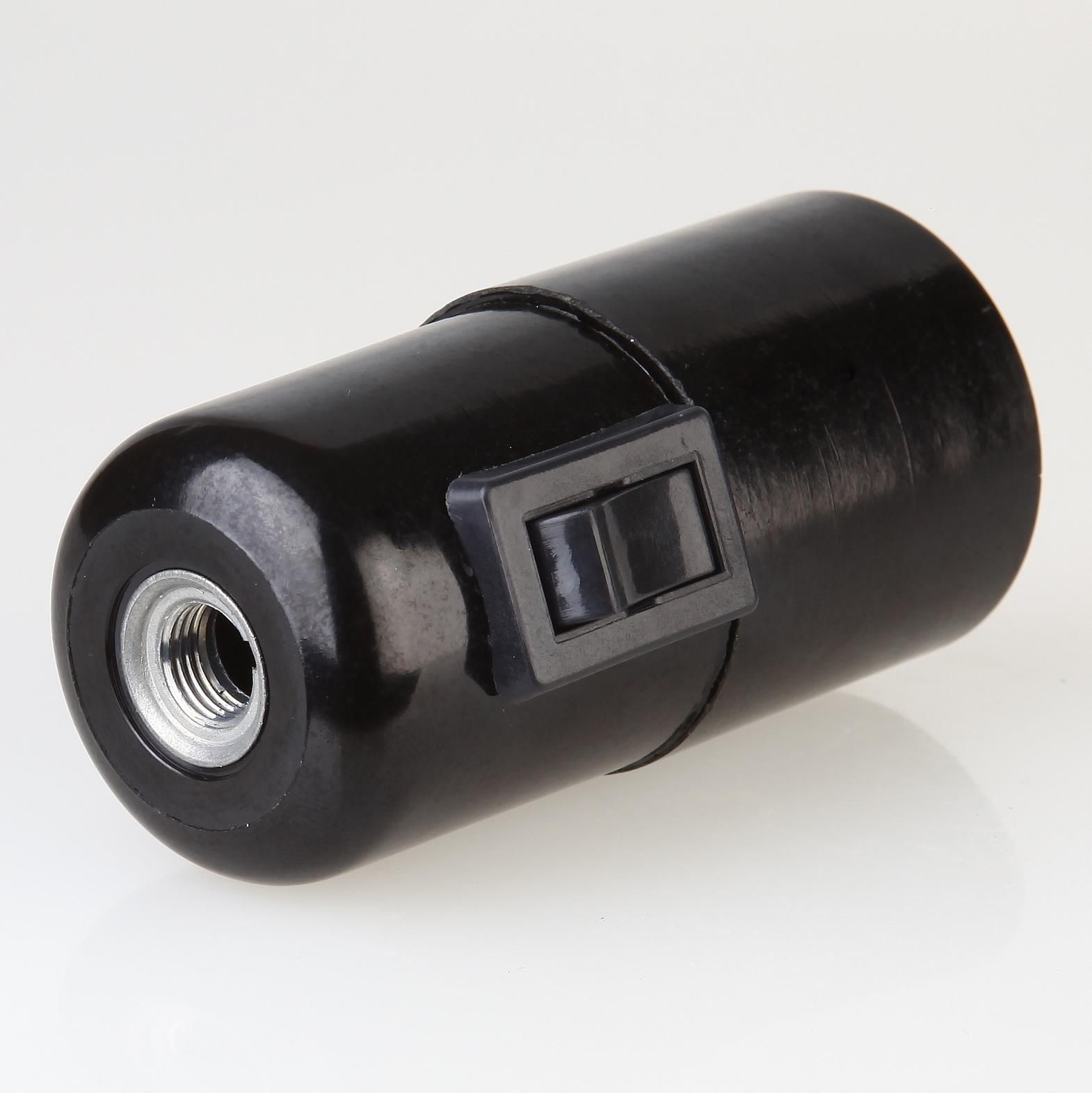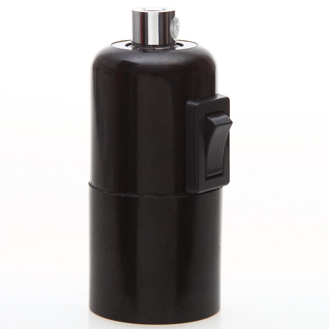 E27 Bakelit Vintage Fassung schwarz mit Glattmantel Wippschalter Metall Zugentlast