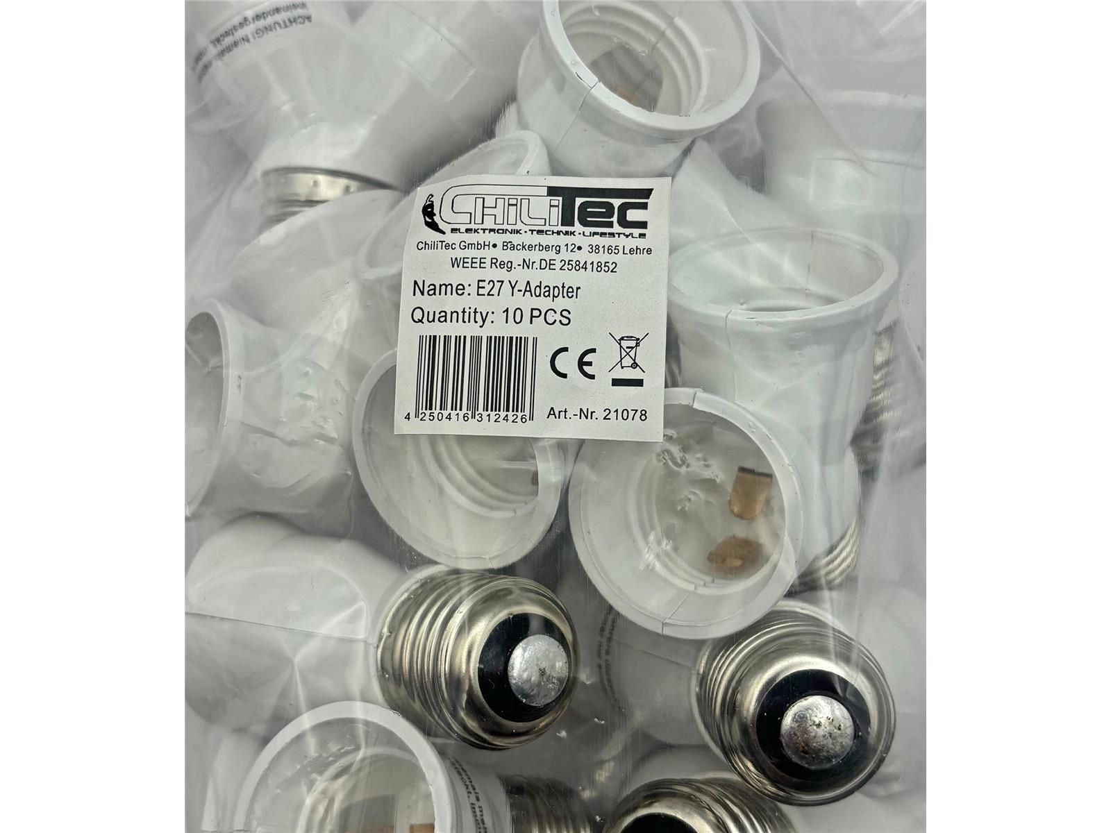 ChiliTec E27-Fassung "Duo", Y-Adapter, Kunststoffauf 2x E27-Schraubfassungen