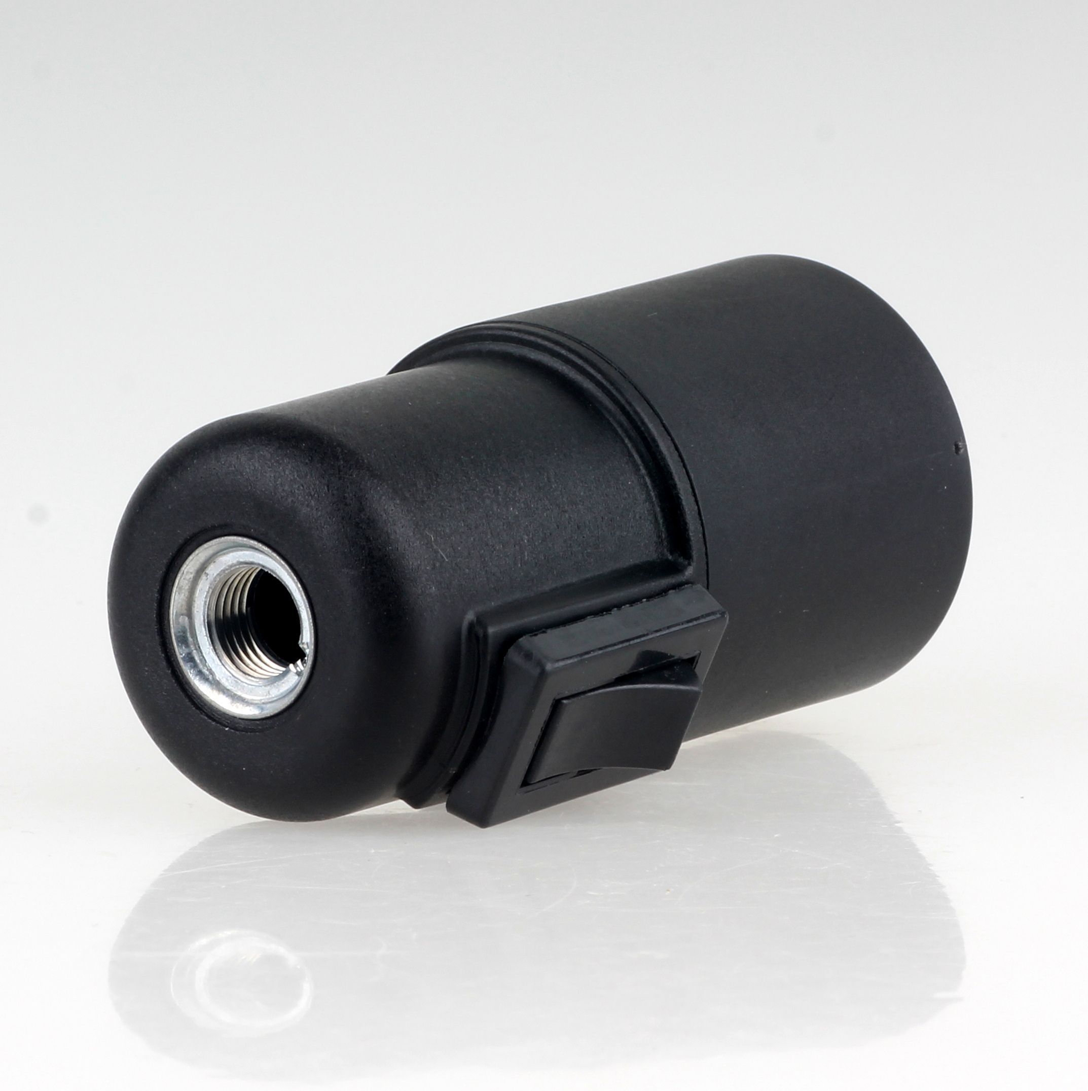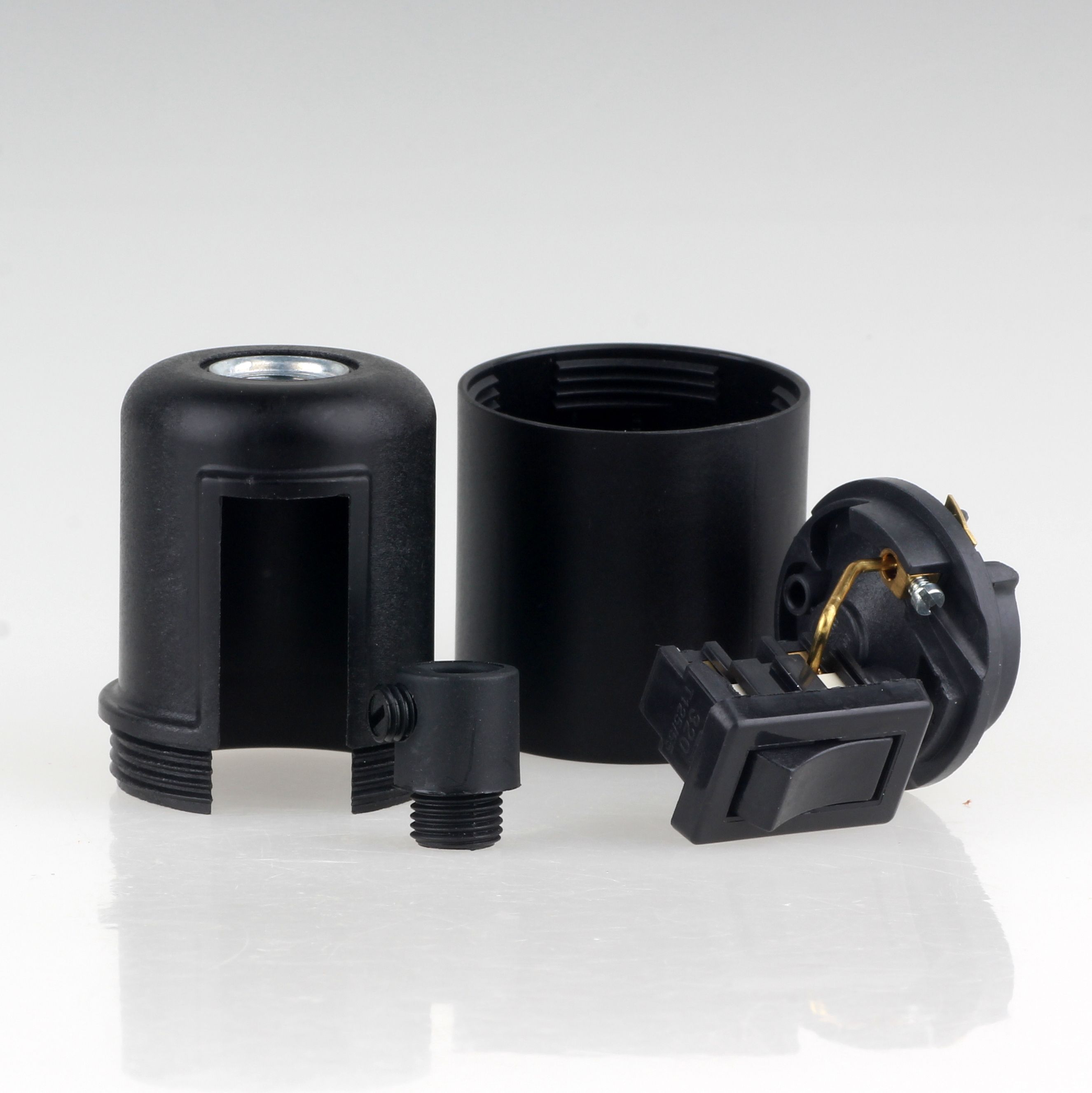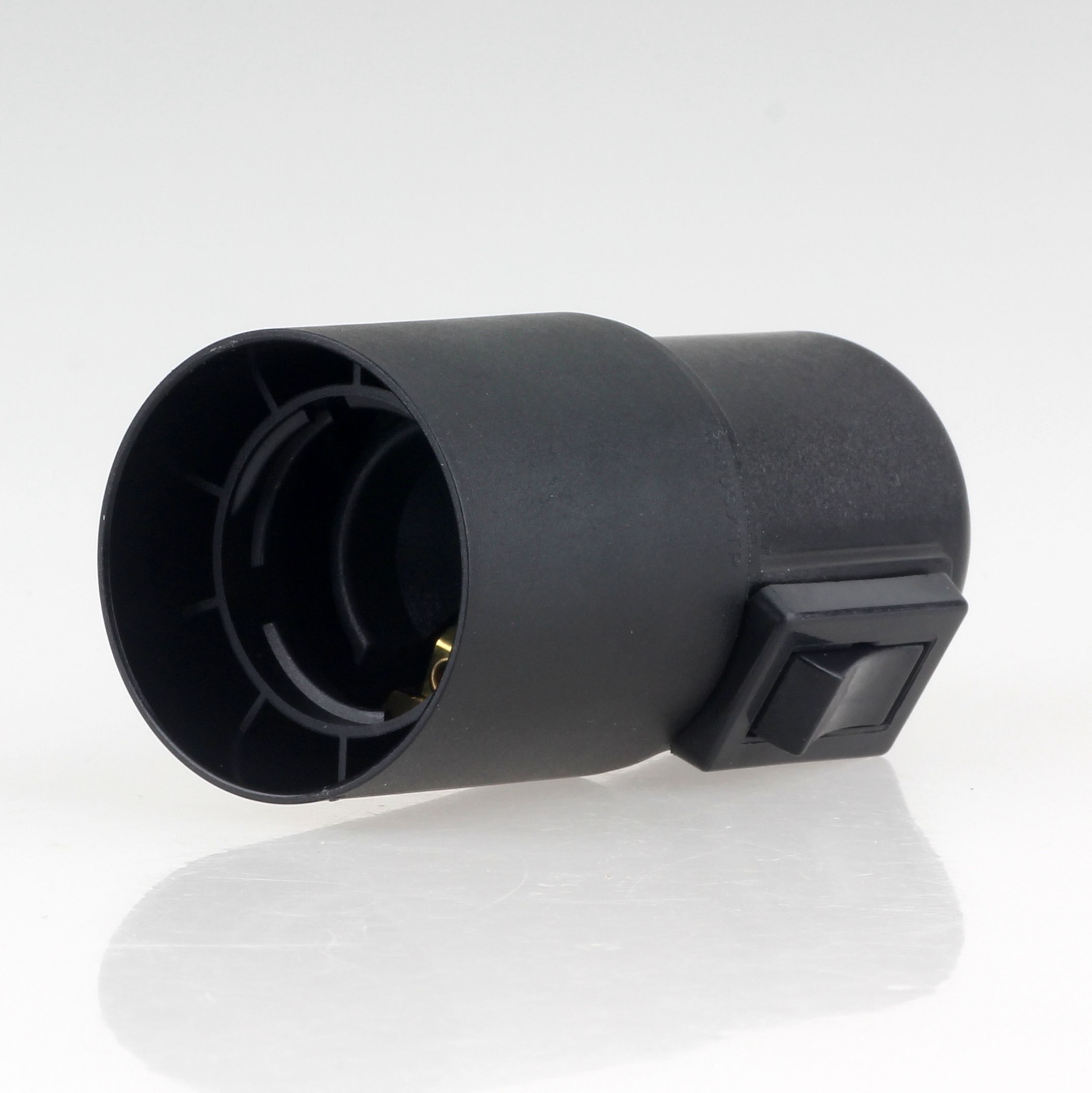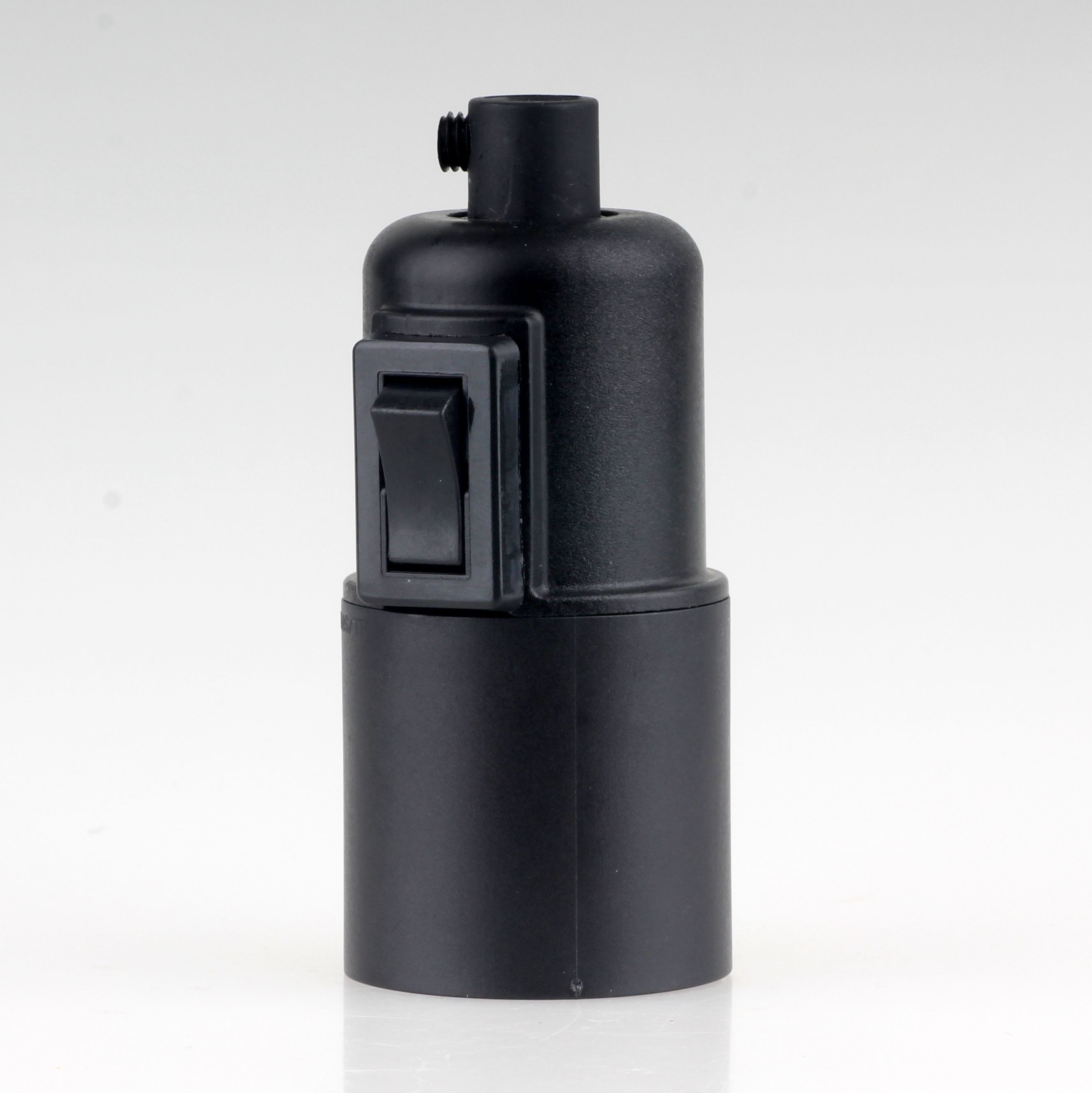 E27 Glattmantel Lampenfassung schwarz mit Wippschalter und Zugentlastung Kunststof