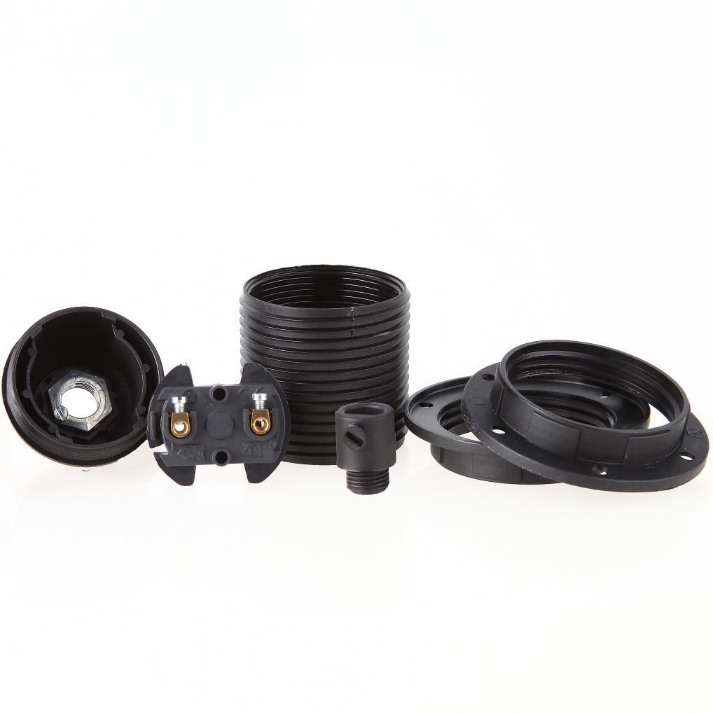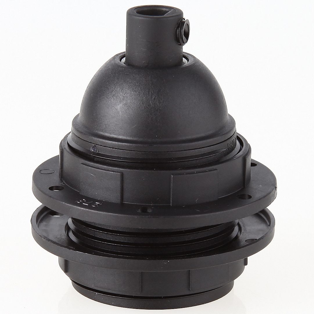E27 Kunststoff Lampenfassung schwarz mit Außengewinde 2x Schraubring und Zugentlaster