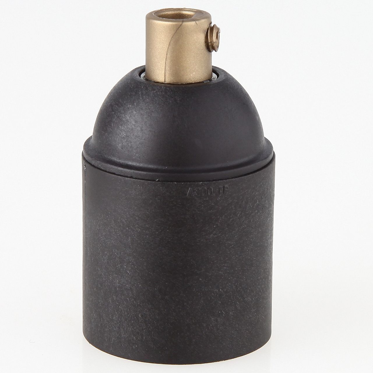 E27 Kunststoff Lampenfassung schwarz ohne Außengewinde mit Zugentlaster gold
