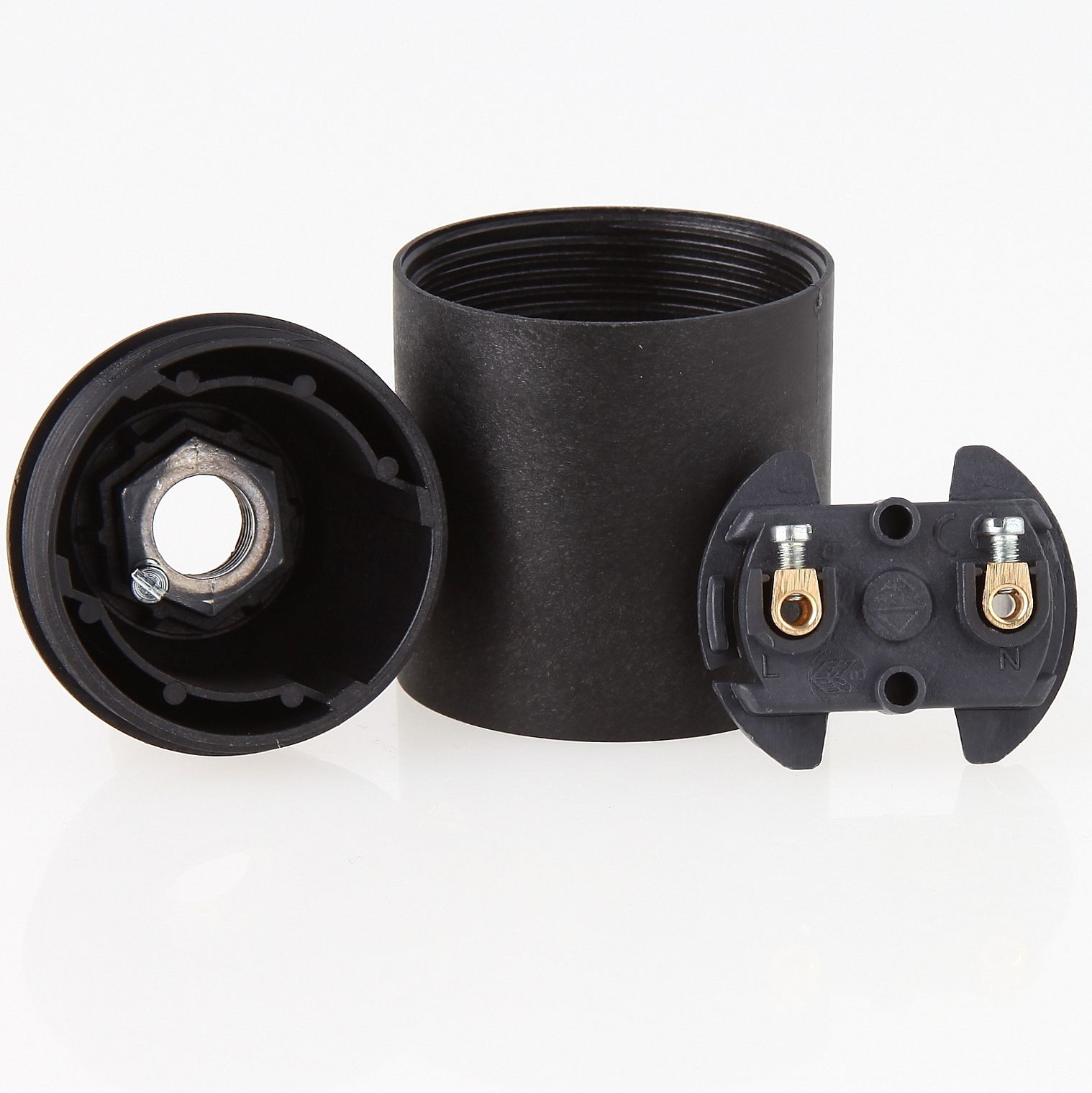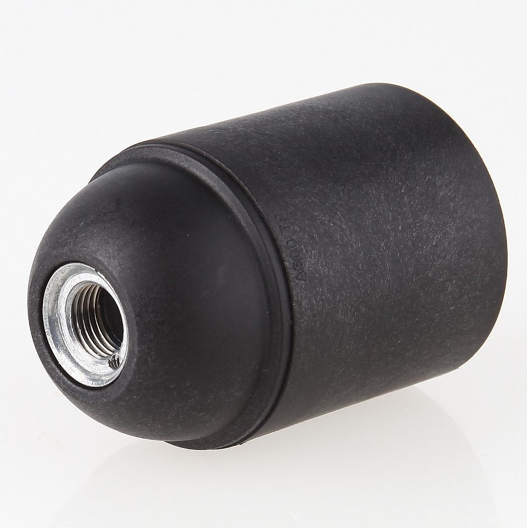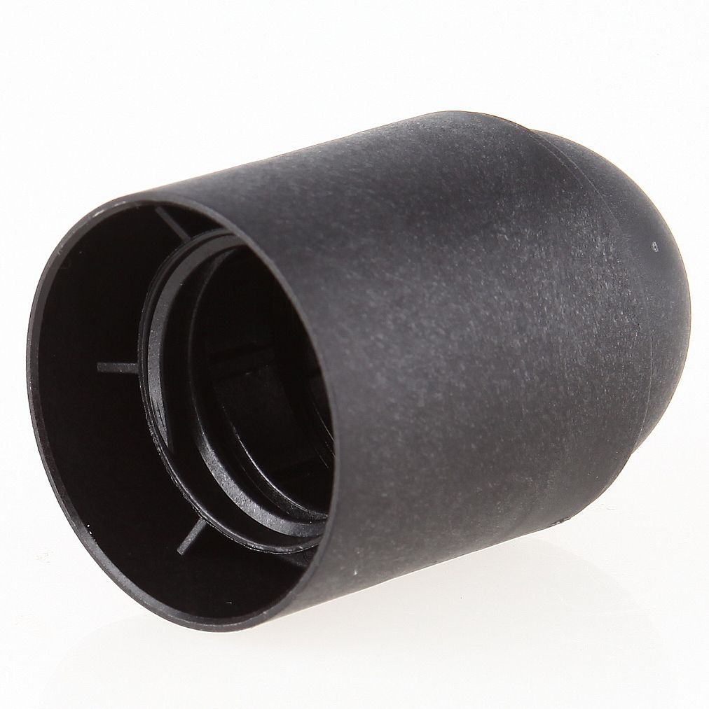 E27 Kunststoff Lampenfassung schwarz ohne Außengewinde mit Zugentlaster Quetschver