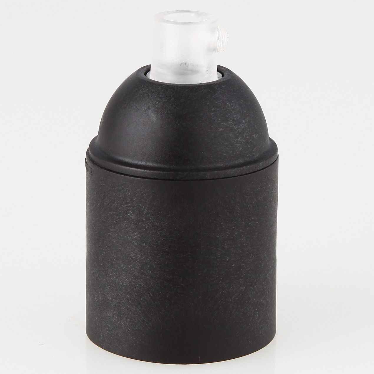 E27 Kunststoff Lampenfassung schwarz ohne Außengewinde mit Zugentlaster transparent