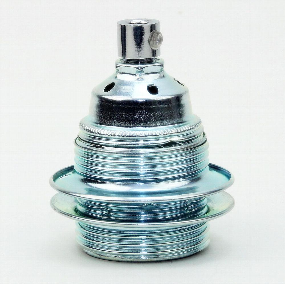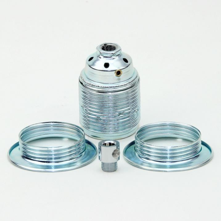 E27 Metall-Lampenfassung verchromt mit Außengewinde, 2 Schraubringe & Klemmnippel