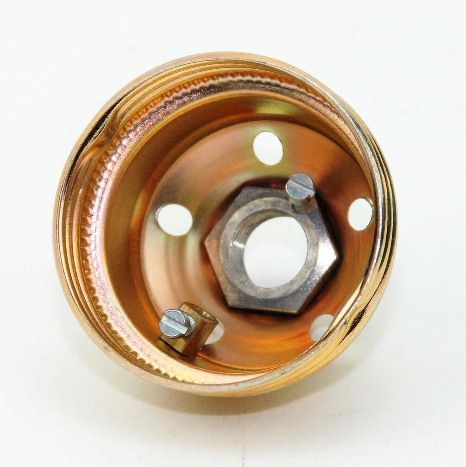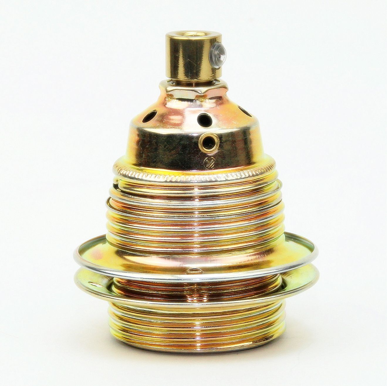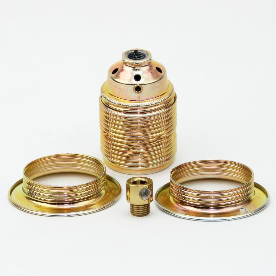 E27 Metall-Lampenfassung vermessingt mit Außengewinde, 2 Schraubringe & Klemmnippe