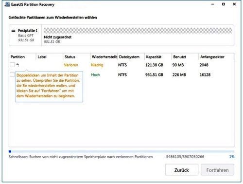 EaseUS Partition Recovery / Windows / 1 PC / 1 Jahr / KEY (ESD)