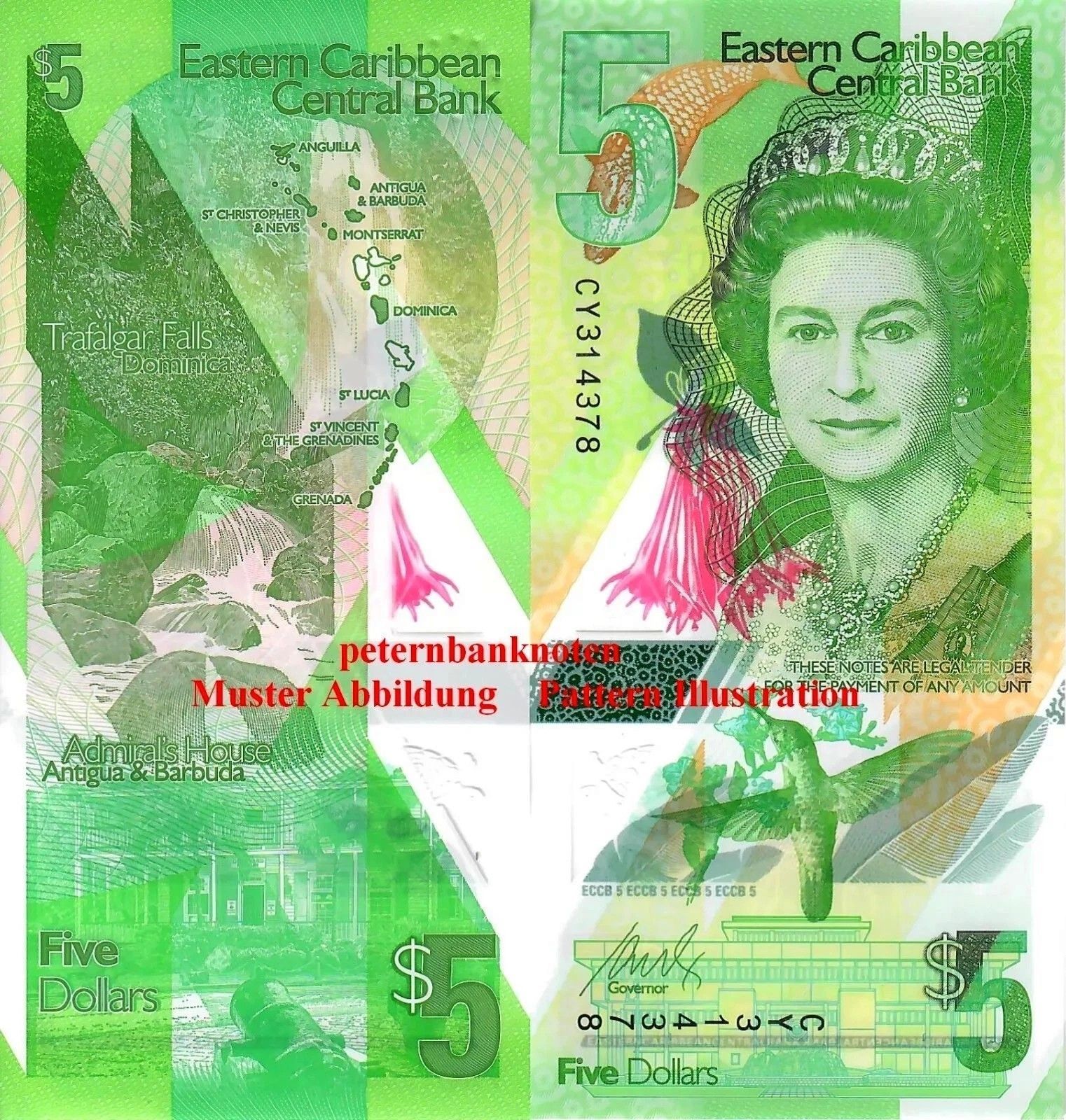 East Caribbean States 5 Dollars 2021. Unc P New Polymer 6375#