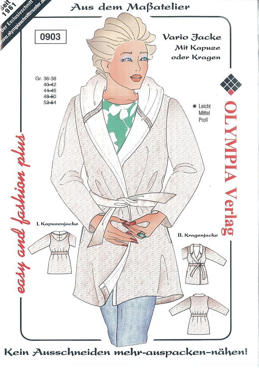 Deutsches Schnittmuster mit Nähanleitung von Olympia 1 Schnitt - 2 Varianten Stoffempfehlungen des Verlages: Walkstoffe, Tweed, kräftige Wollstoffe
