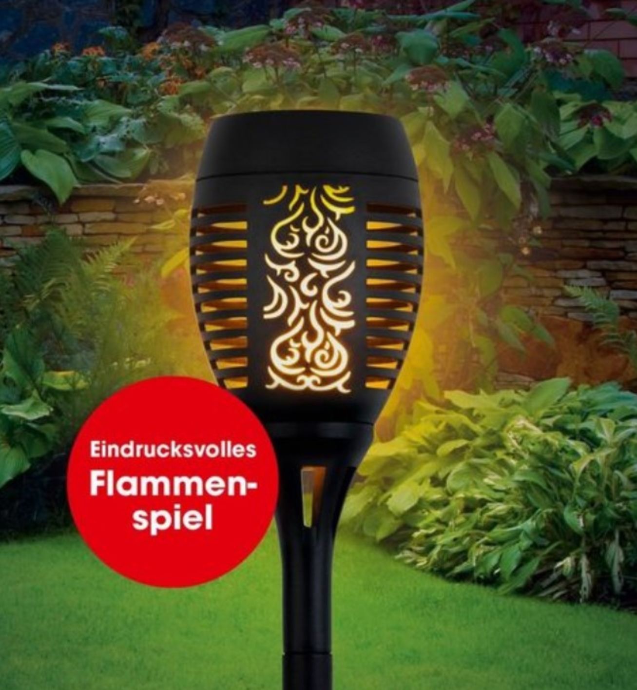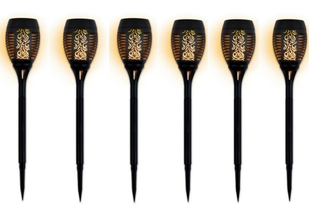 EASYmaxx Gartenfackel Solar-Fackel Gartenleuchte mit LED-Flammeneffekt 6er Set