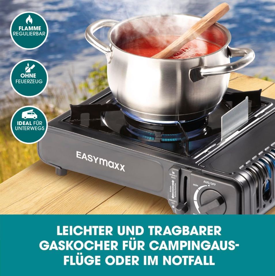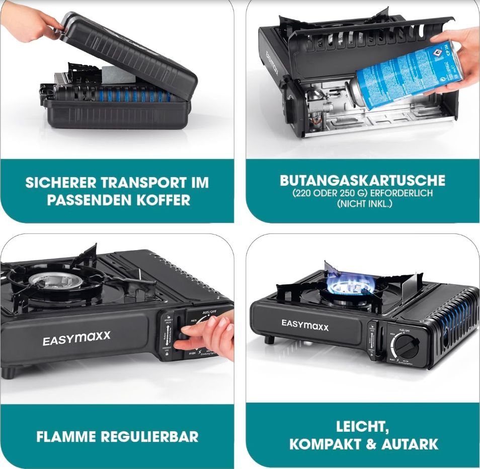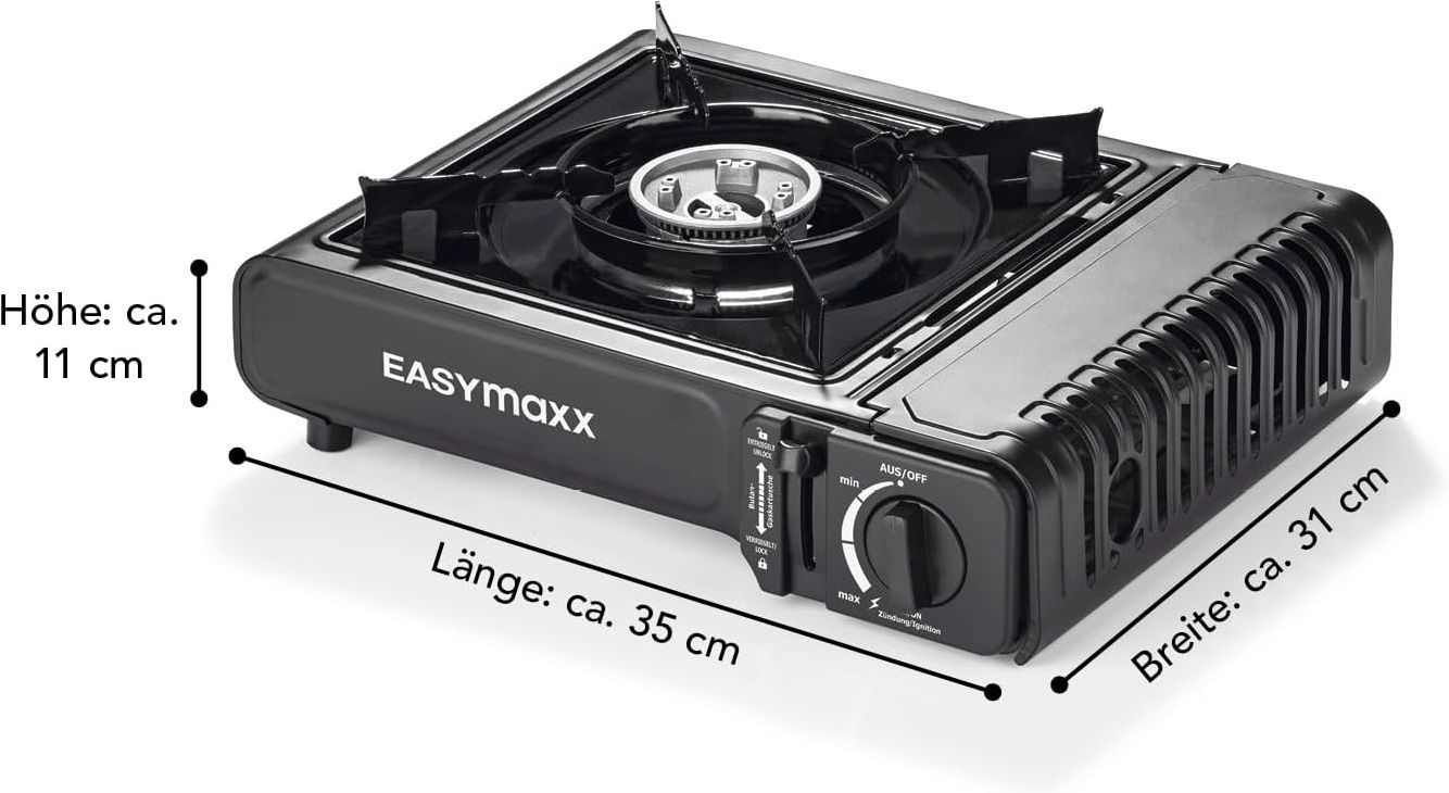 EASYmaxx Gaskocher tragbar kompakter Campingkocher mit Transportkoffer 2500 W Outdoo