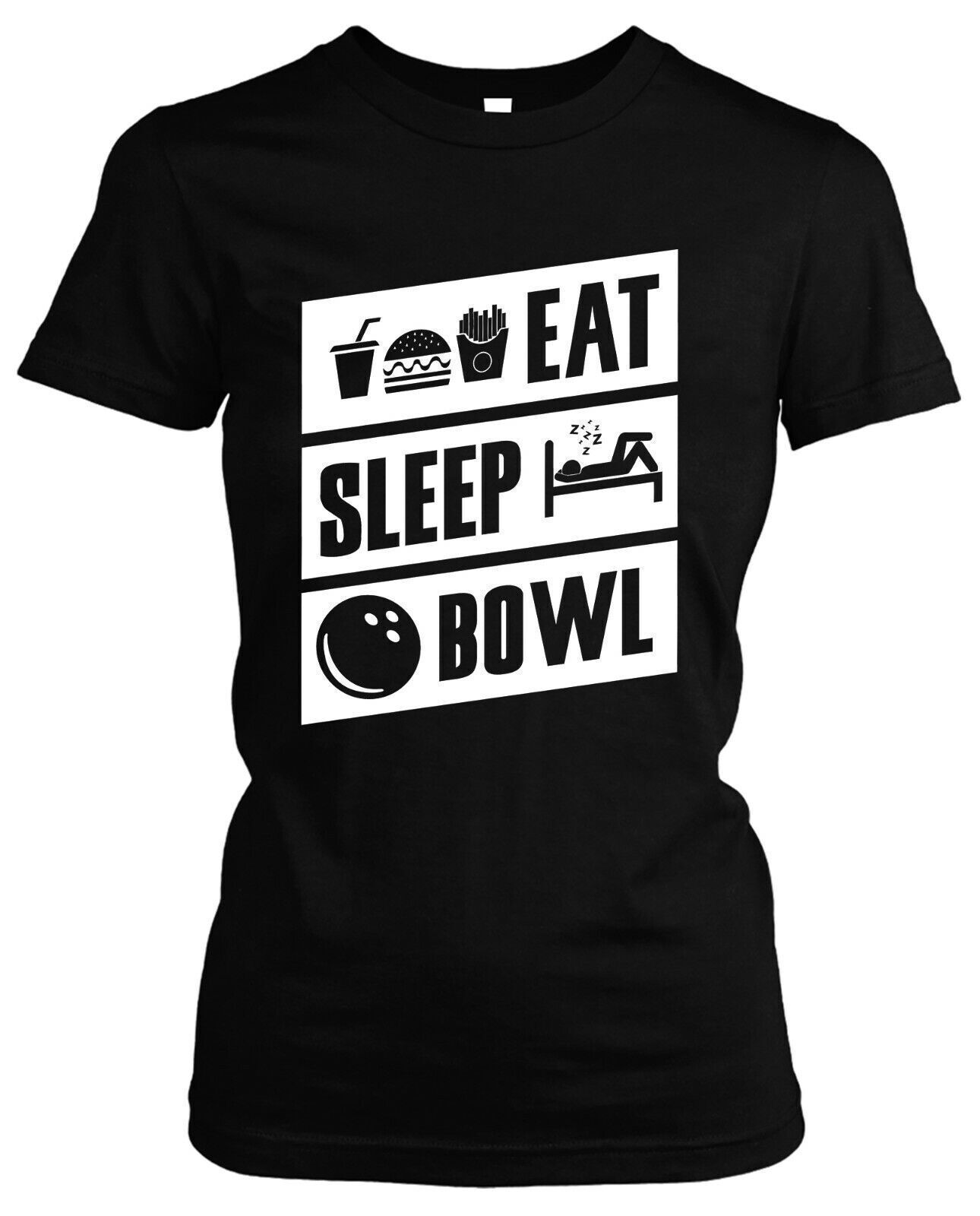 Eat Sleep Bowle Damen Girlie T-Shirt | Kugel Freizeit Fun Bowling Kegel