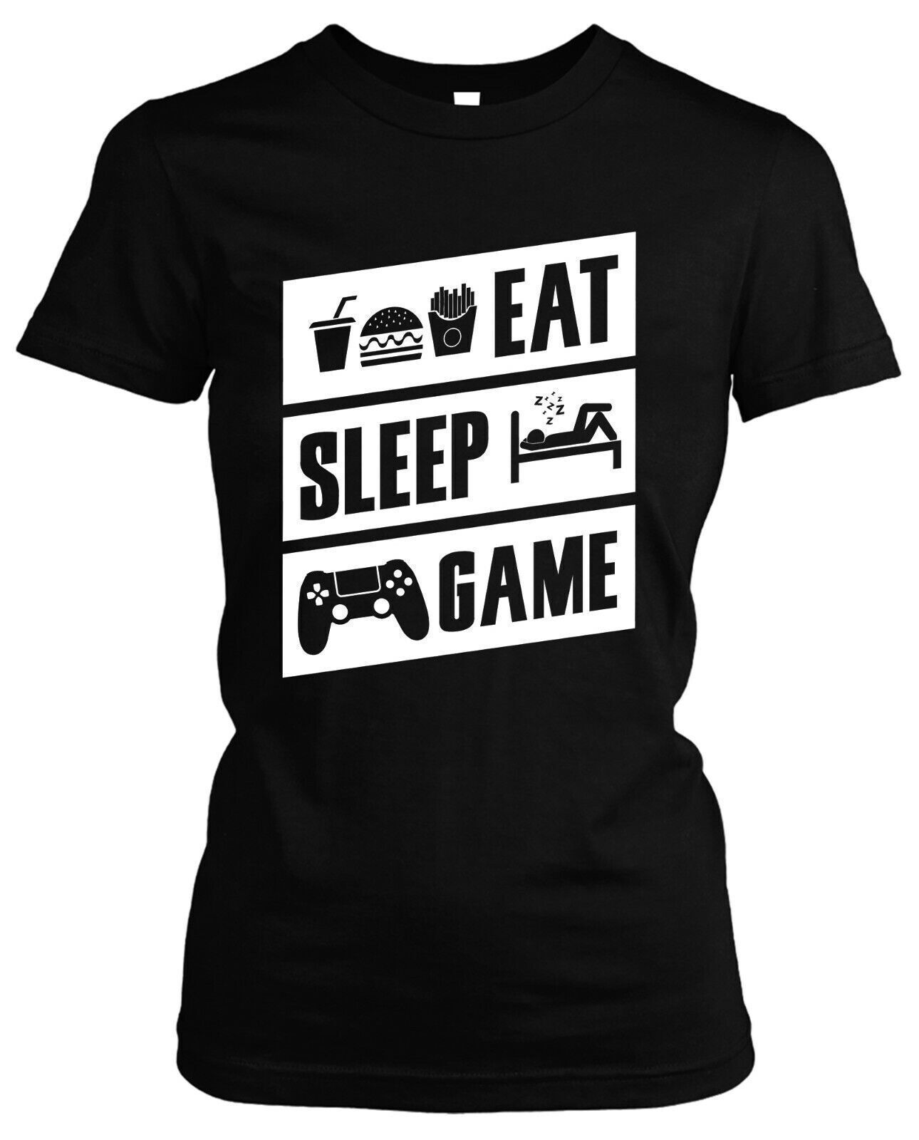 Eat Sleep Game Play Staion Damen Girlie T-Shirt | Konsole Zocken Fun XBox Spiel