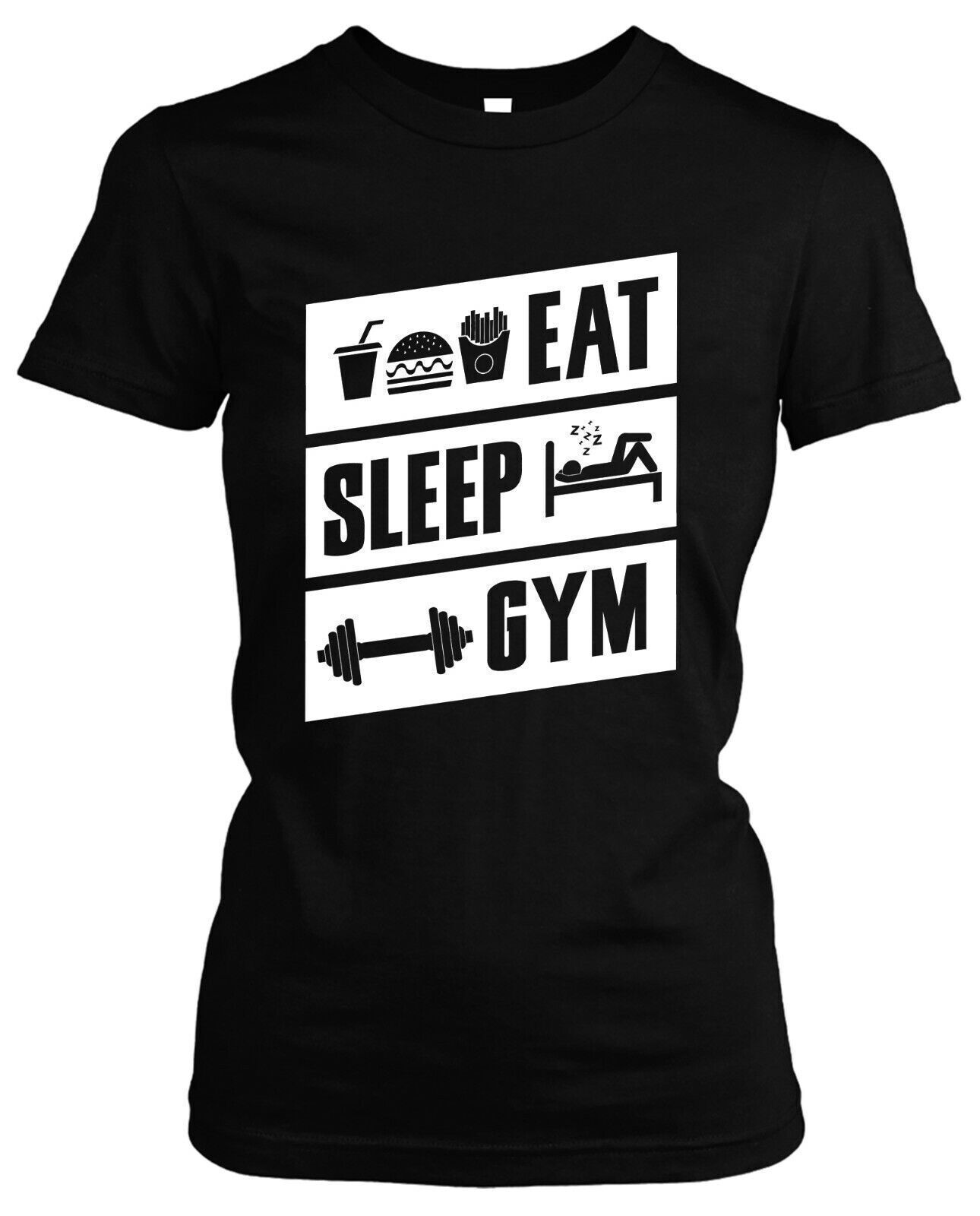 Eat Sleep Gym Damen Girlie T-Shirt | Fitniss Pumpen Sport Muskeln Hantel