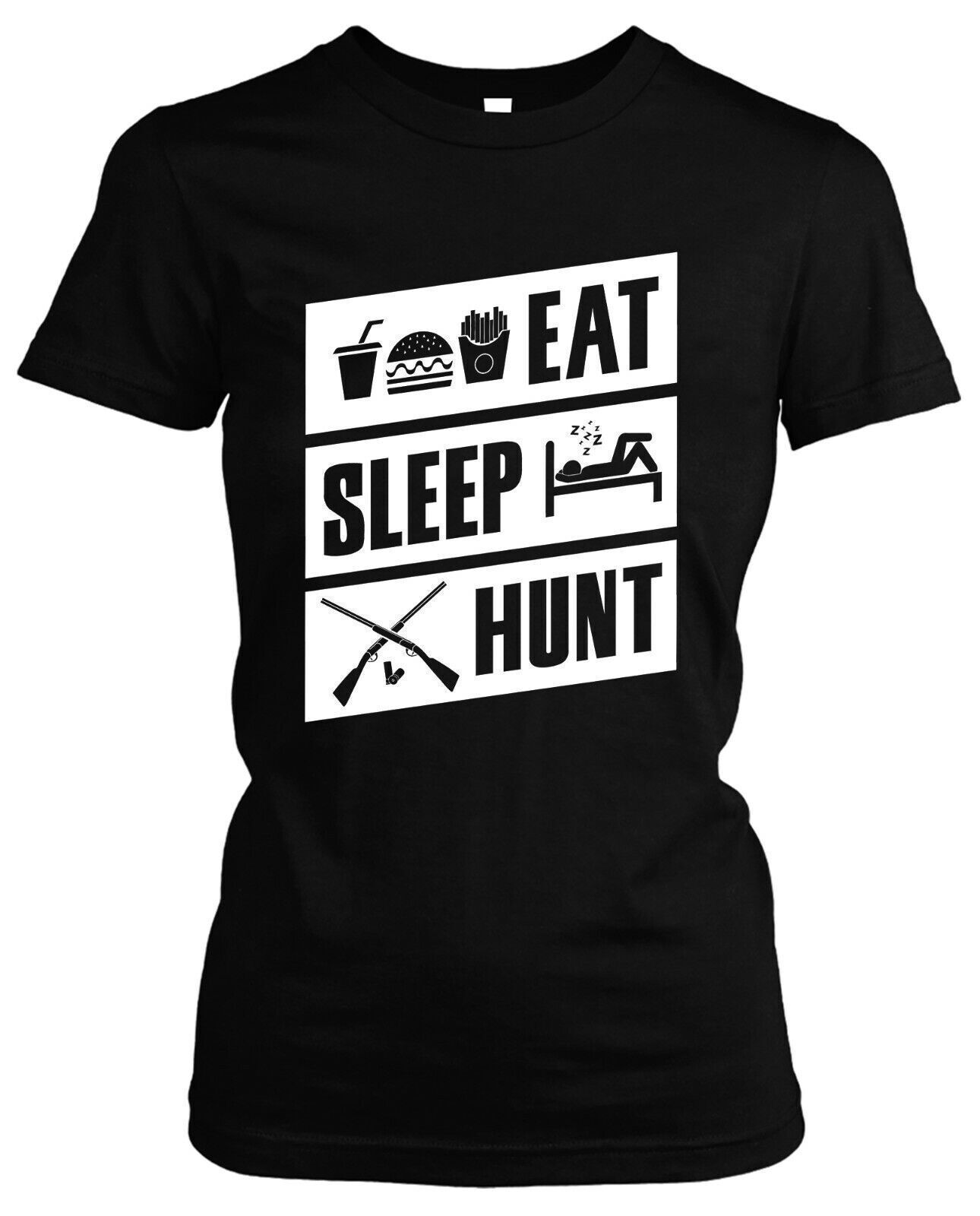 Eat Sleep Hunt Damen Girlie T-Shirt | Jagen Schießen Jäger Waffe Gewähr