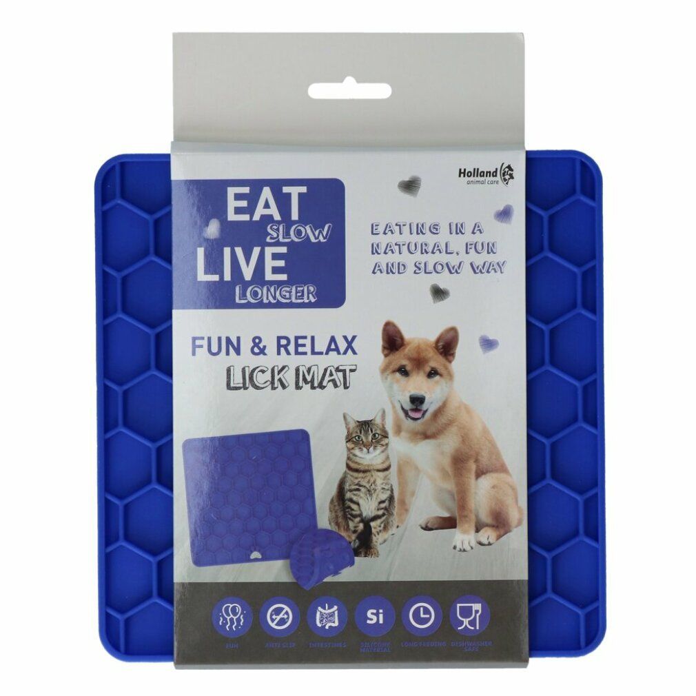 Eat Slow Live Longer Lick Mat Honeycomb Blau
