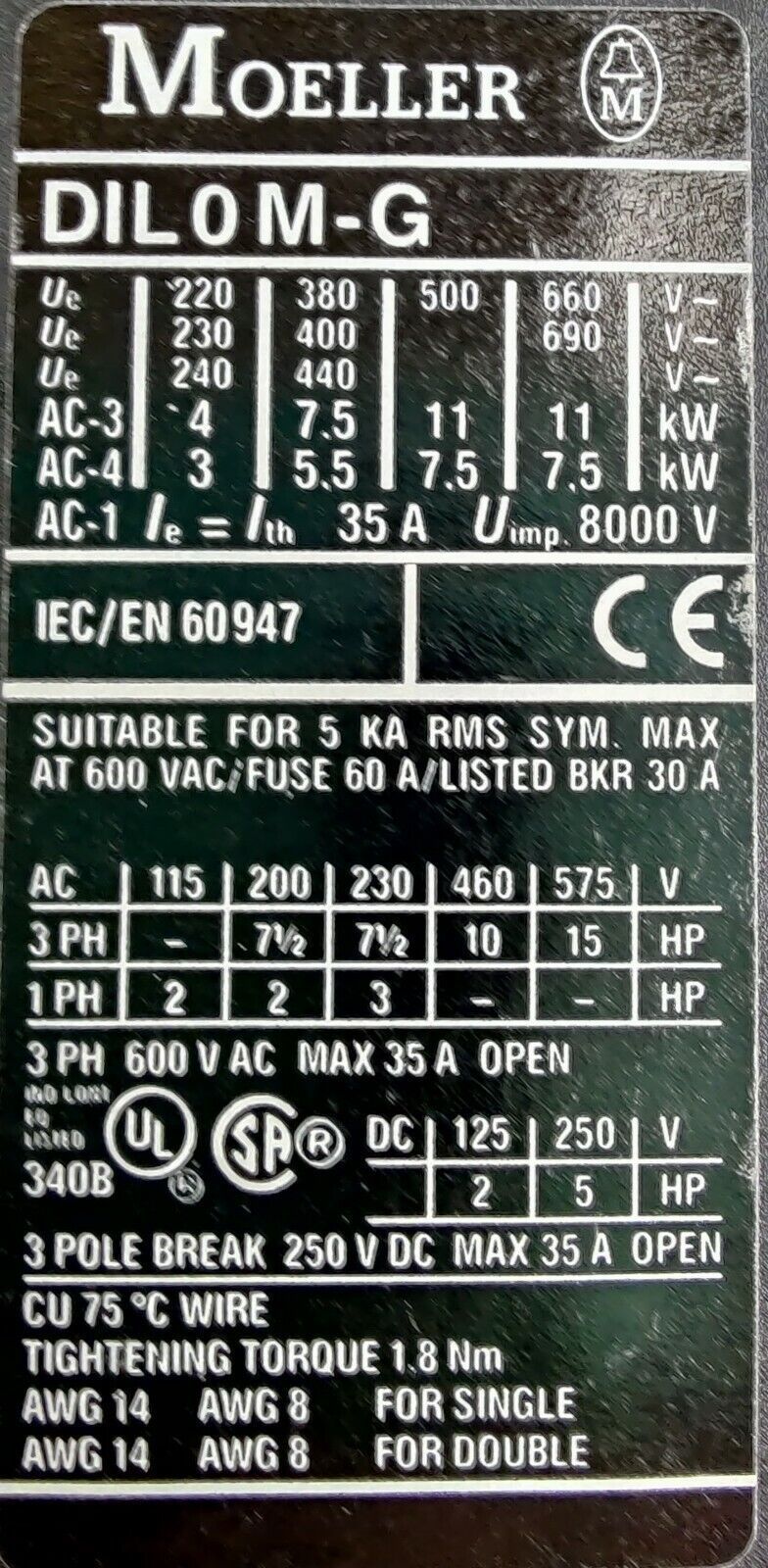 Eaton/Moeller DIL0M-G, Leistungsschütz, 7,5 kW, 24 V DC, 048697