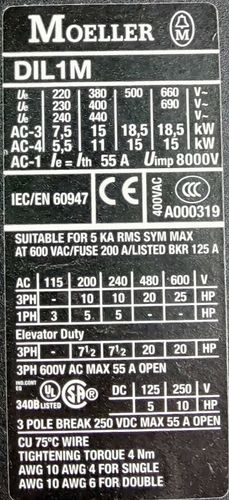 Eaton/Moeller DIL1M, Leistungsschütz, 15 kW, 24 V 50Hz, 049856
