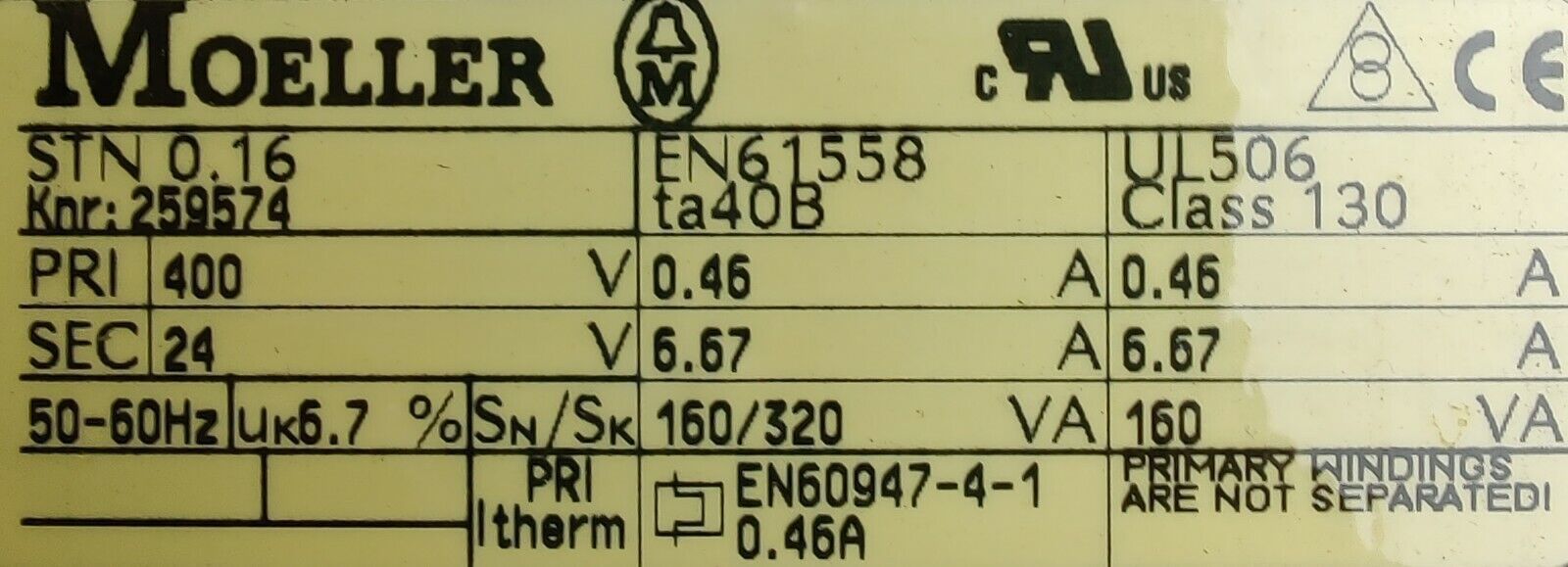 Eaton/Moeller Steuertransformator STN0,16(400/24), 204949
