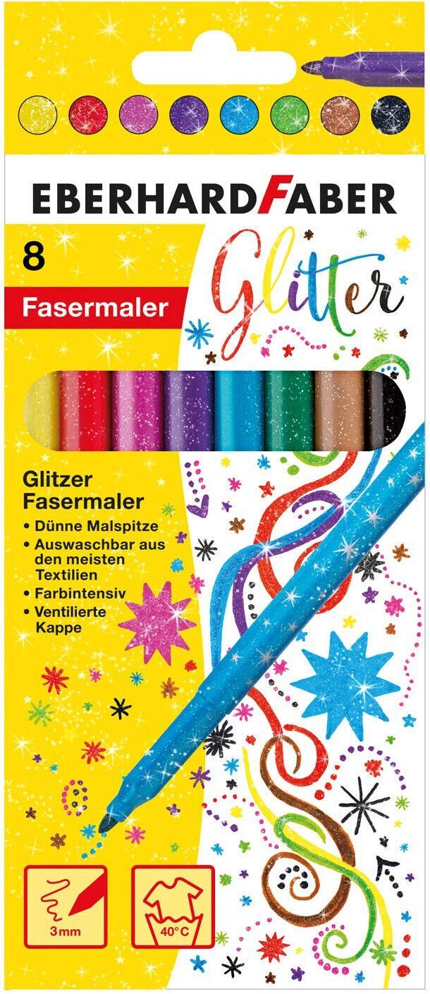 Eberhard Faber Eberhard Faber 551008 Glitzer Fasermaler Glitzerstifte Kartonetui 8er Pack