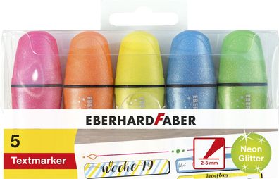 • Eberhard Faber 551408 Textmarke Mini Glitzer Neon - 5 Farben, Kunststoffetui