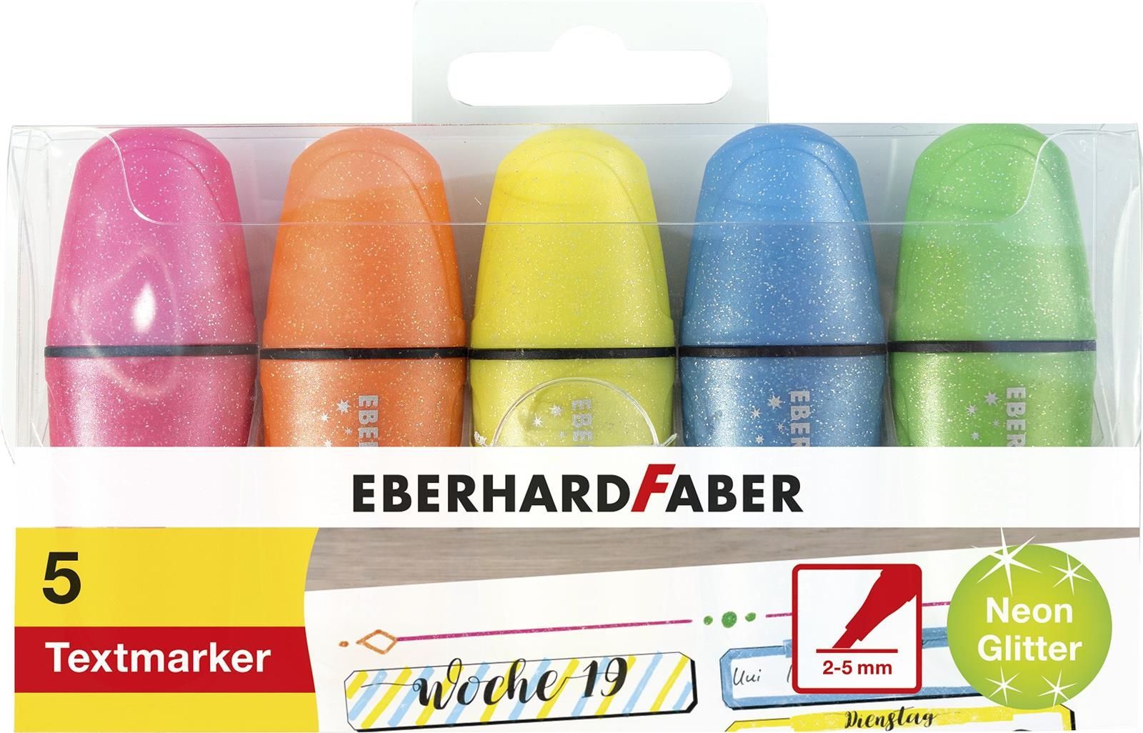 EBERHARD FABER Eberhard Faber 551408 Textmarke Mini Glitzer Neon - 5 Farben, Kunststoffetui