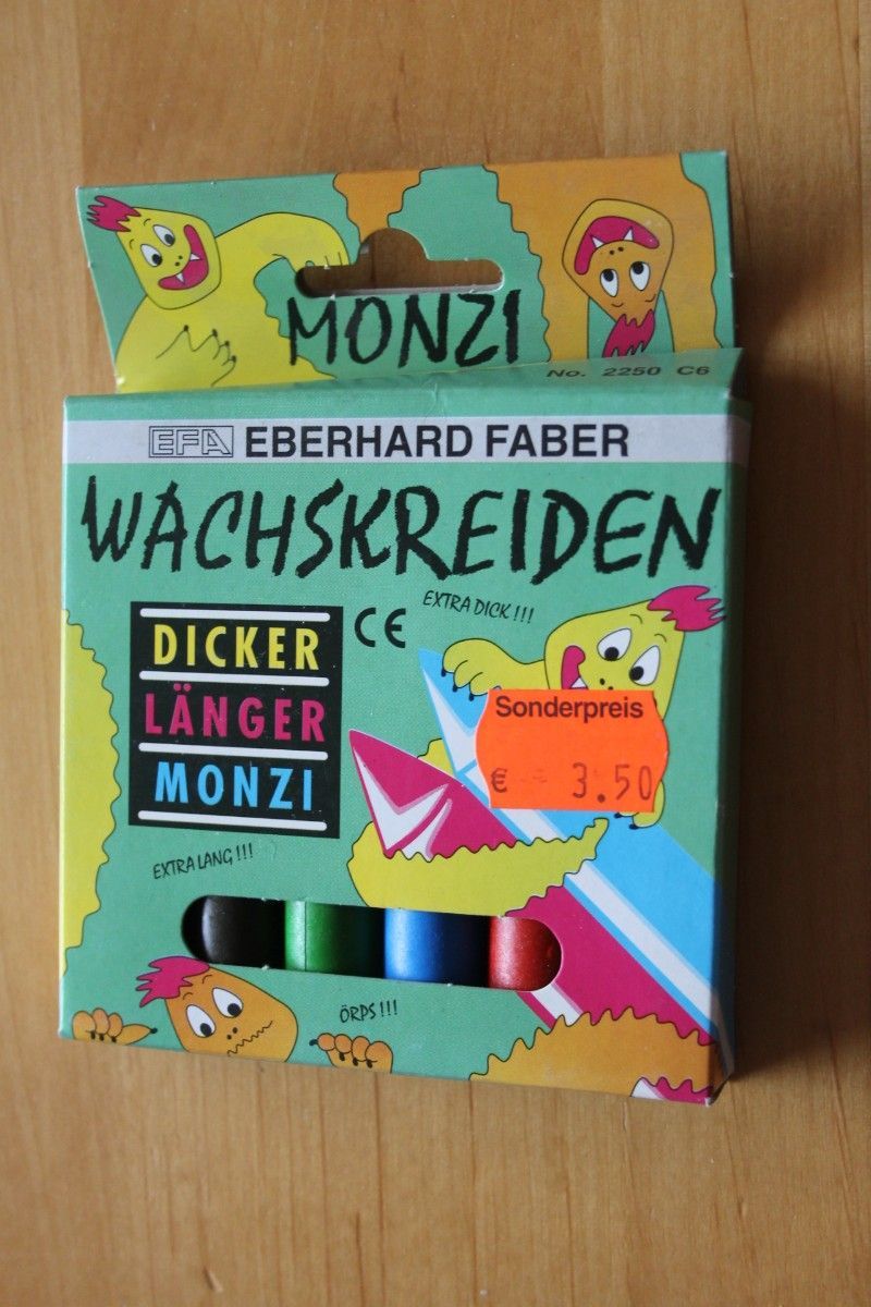 6 Monzi Wachsmalstifte, Wachsmalkreiden, nahezu unzerbrechlich, weil extra dick. Nicht für Kinder unter 3 Jahren geeignet.