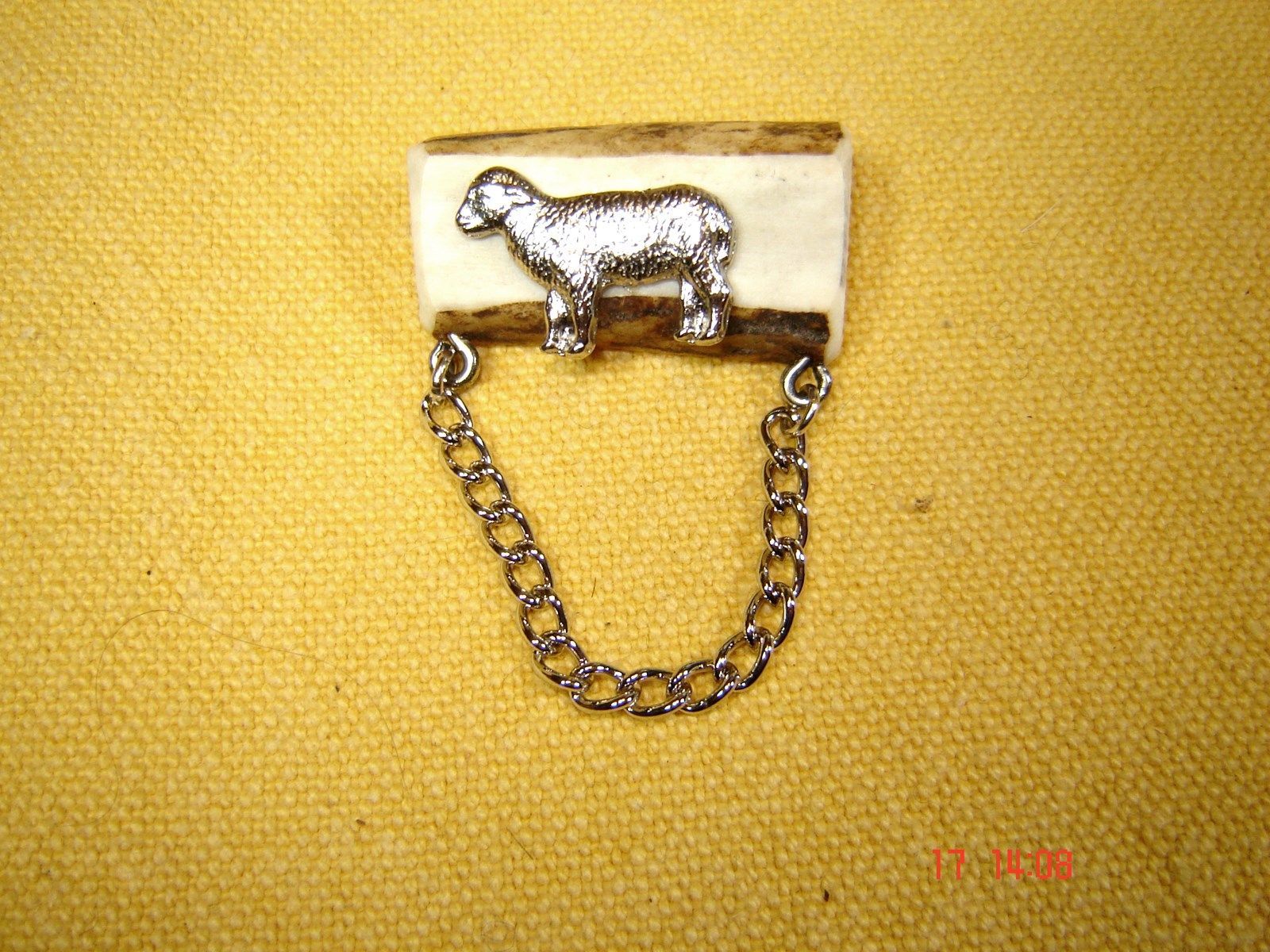 echt Hirschhorn Anstecknadel Schäfchen mit Kettchen Schafzucht Schäferei s-p