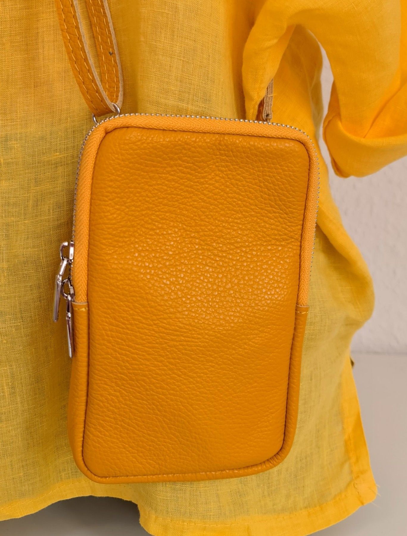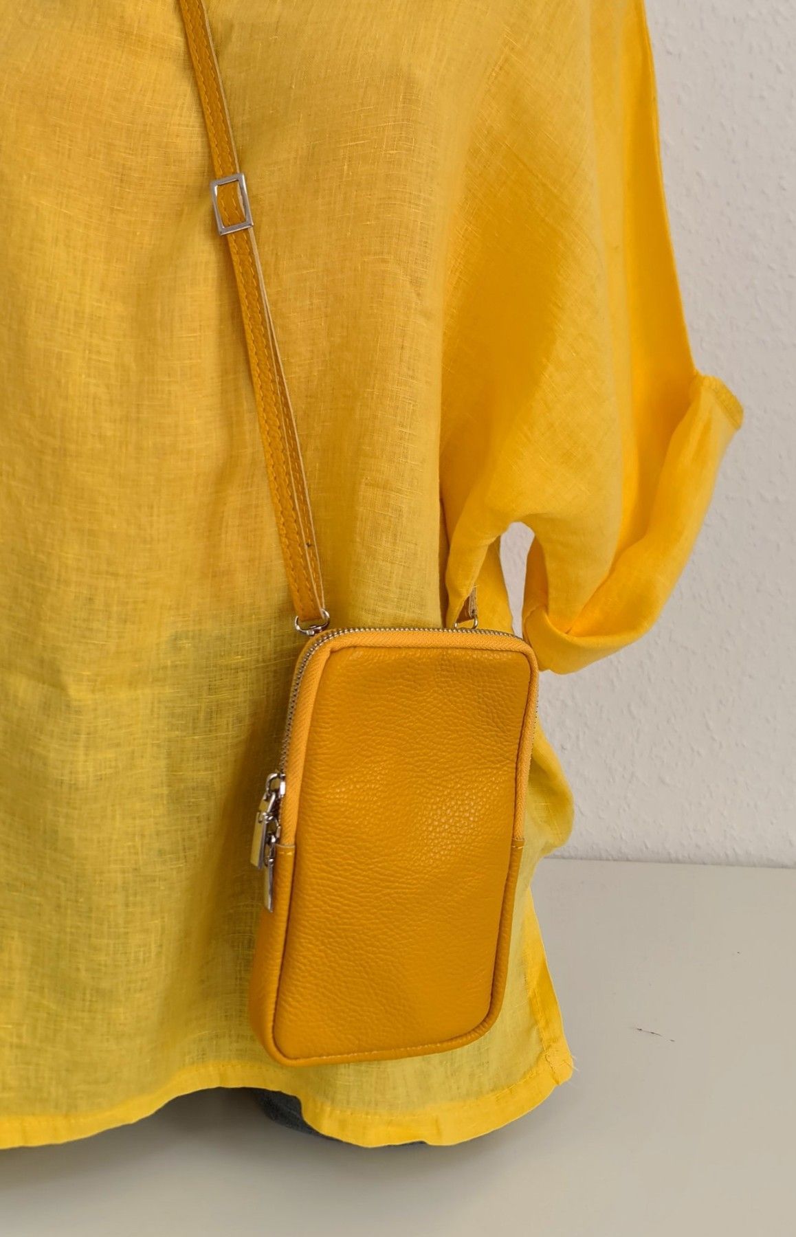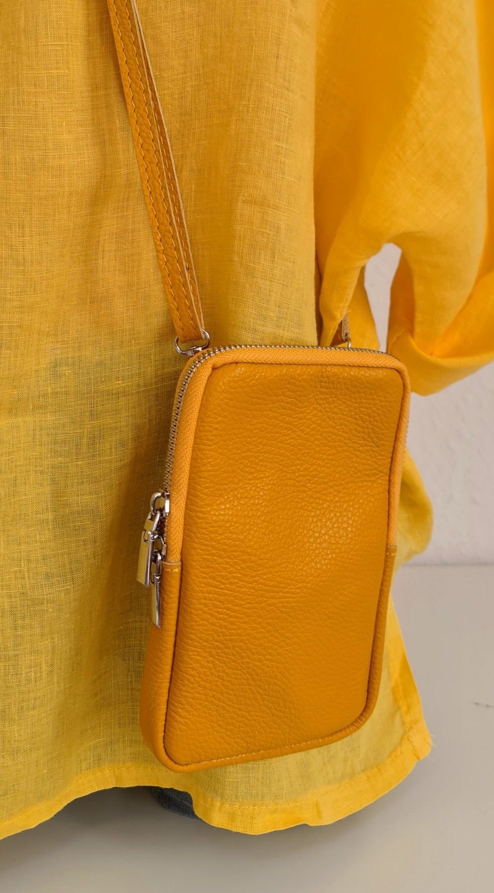 Echt Leder große Handytasche Umhängetasche Tasche Cross Body Senfgelb