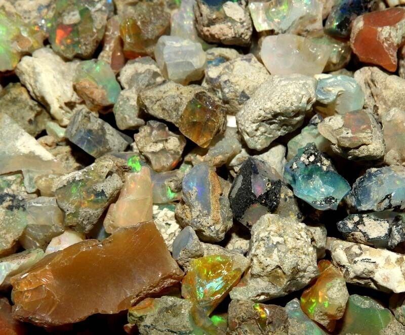 Natürliche multicolore Welo Opal Rohsteine Zur Information: 1 Carat sind 0,2 Gram Maße: ca. 5 bis 15 mm Herkunft: Äthiopien Wirkungen für den reinen Geist Der Opal wird in Indien als Glücksbringer verehrt. Bei den Ureinwohnern Australiens gilt er als „Stein der 1000 Lichter“. Im Orient sagt man über