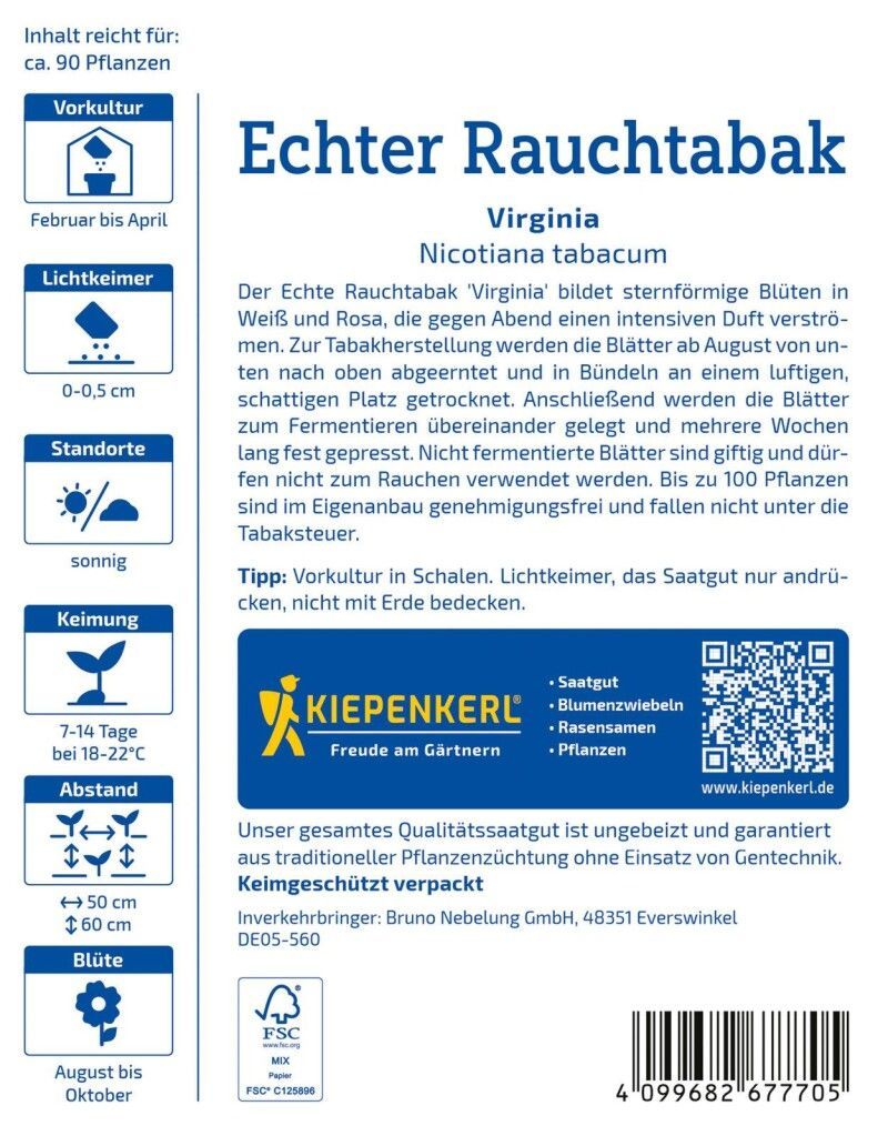 Kiepenkerl Echter Rauchtabak Virginia, Imposante, wüchsige Beetblume - zum