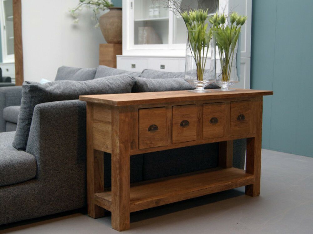 Echtholz Teak Holz Konsolentisch Kommode mit 4 Schubladen Unikat Top Qualität 160 cm
