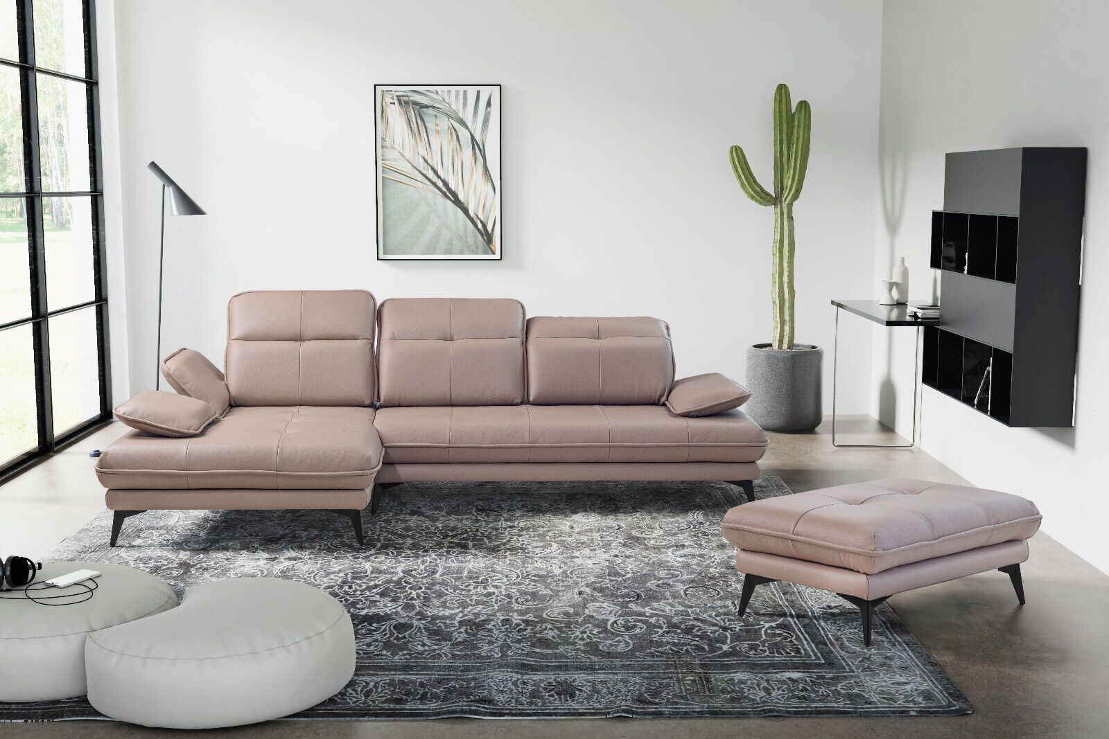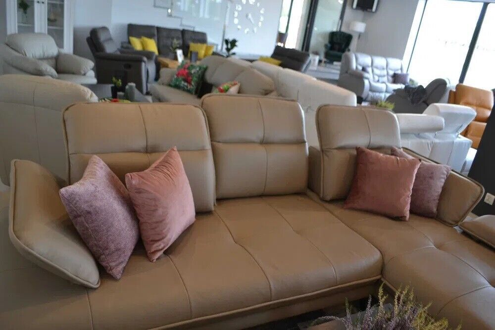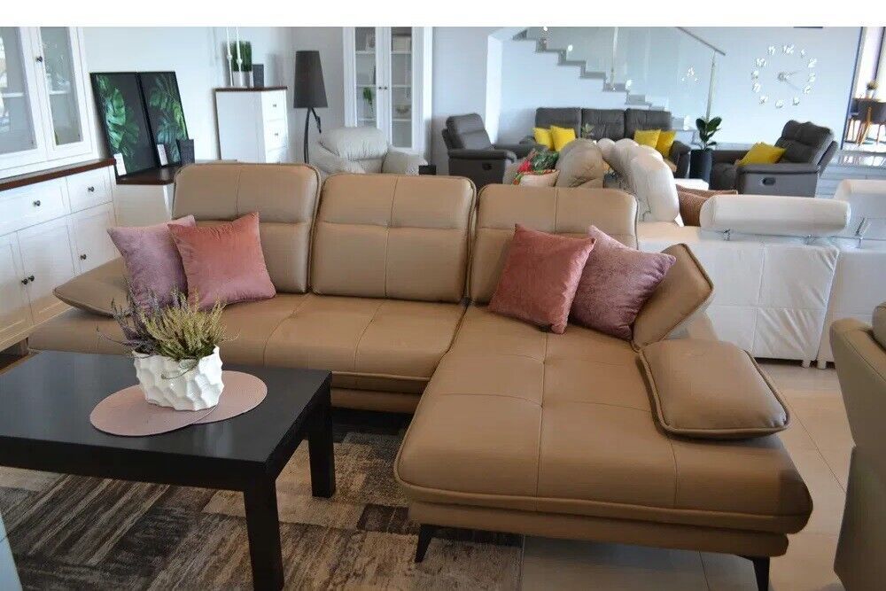 Echtleder Designer Ecksofa L-FORM COUCH BEIGE Verstellbar Ottomane SOFA Neuheit