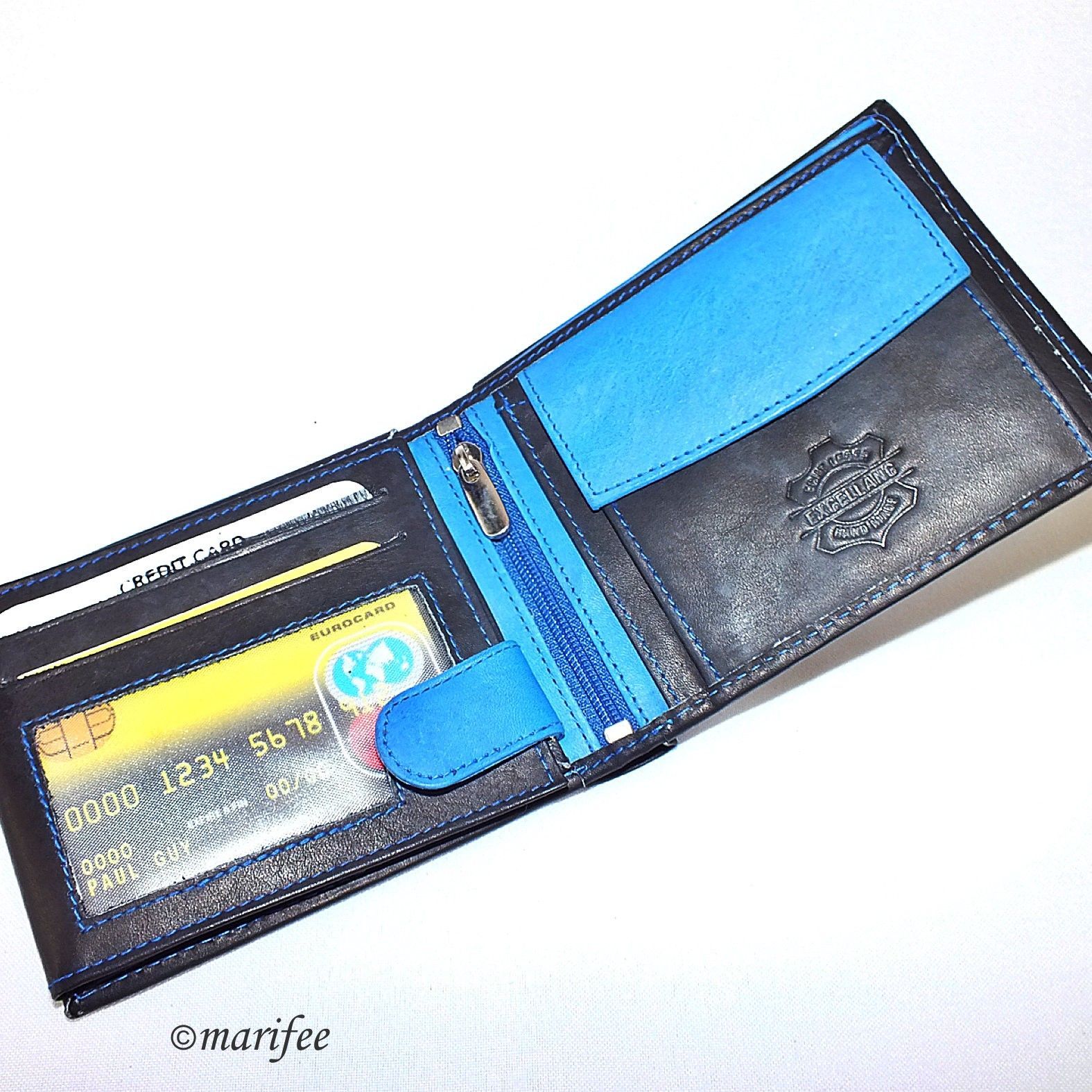 Echtleder-Geldbörse Excellanc, Schwarz-Blau Art.-Nr. 13177