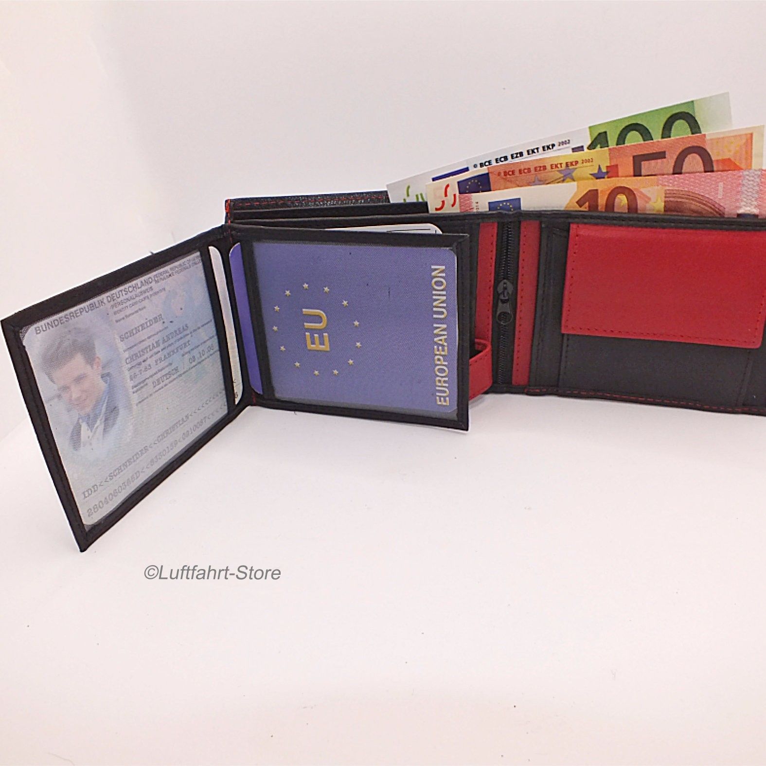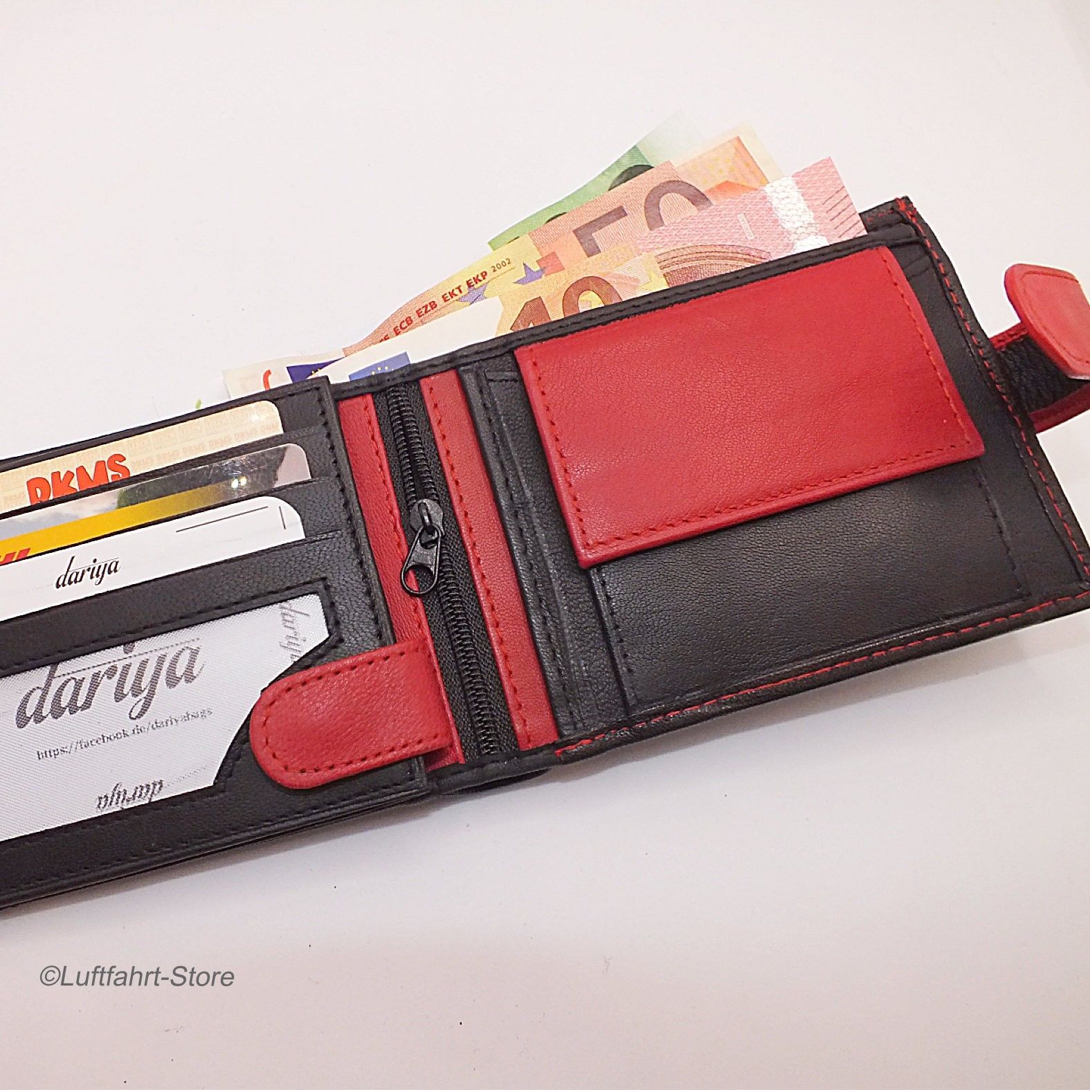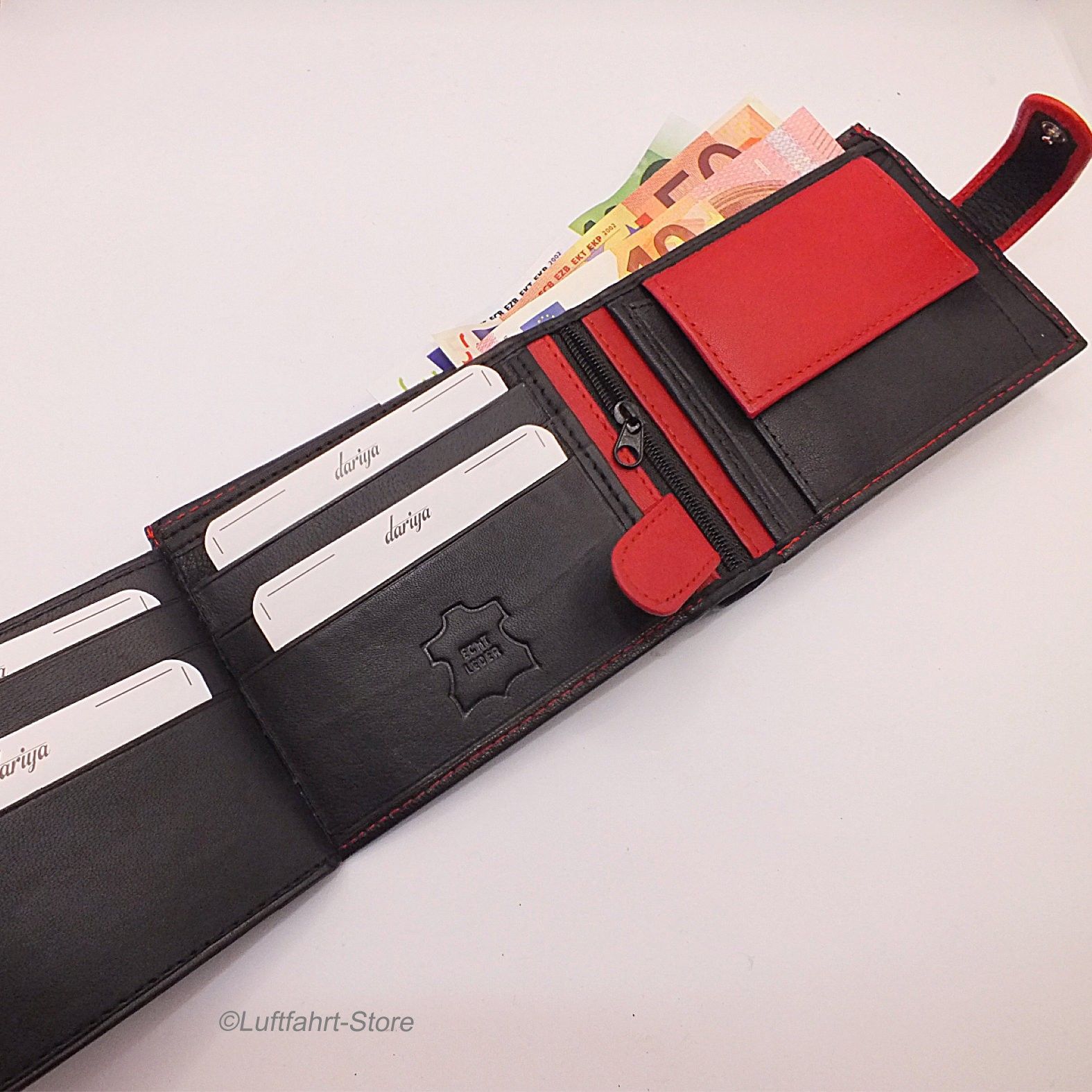 Echtleder-Geldbörse/ Portemonnaie Rot- Schwarz Art.-Nr. 13065