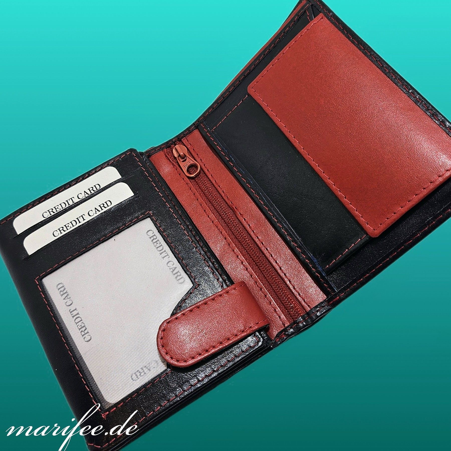 Echtleder-Geldbörse/ Portemonnaie Rot-Schwarz, Excellanc Art.-Nr. 13278