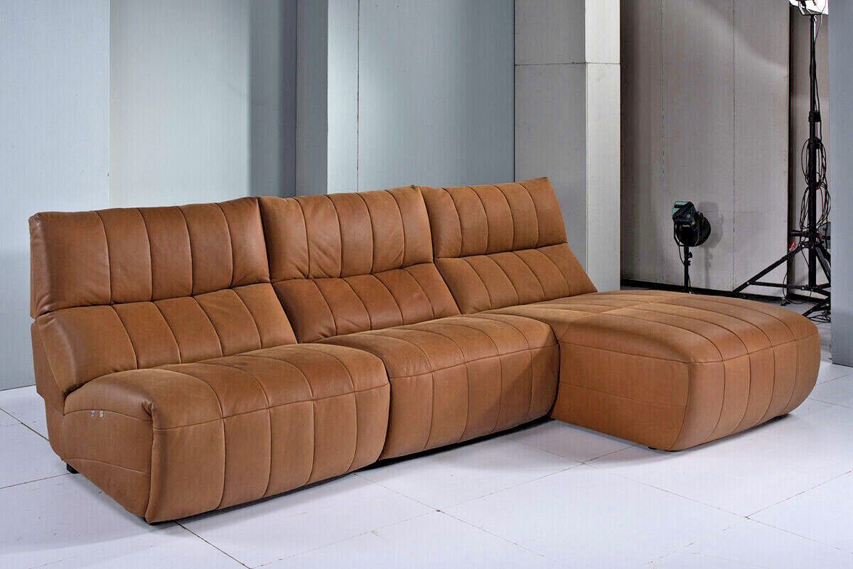 Echtleder Premium Ecksofa IN L-FORM COGNAC BRAUN 2 x RELAX Funktion FARBEN