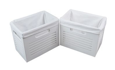 • 2er Ablagekörbe Aufbewahrungskörbe Regalkorb MDF Holz weiß mit Bezug 27x17 H.22