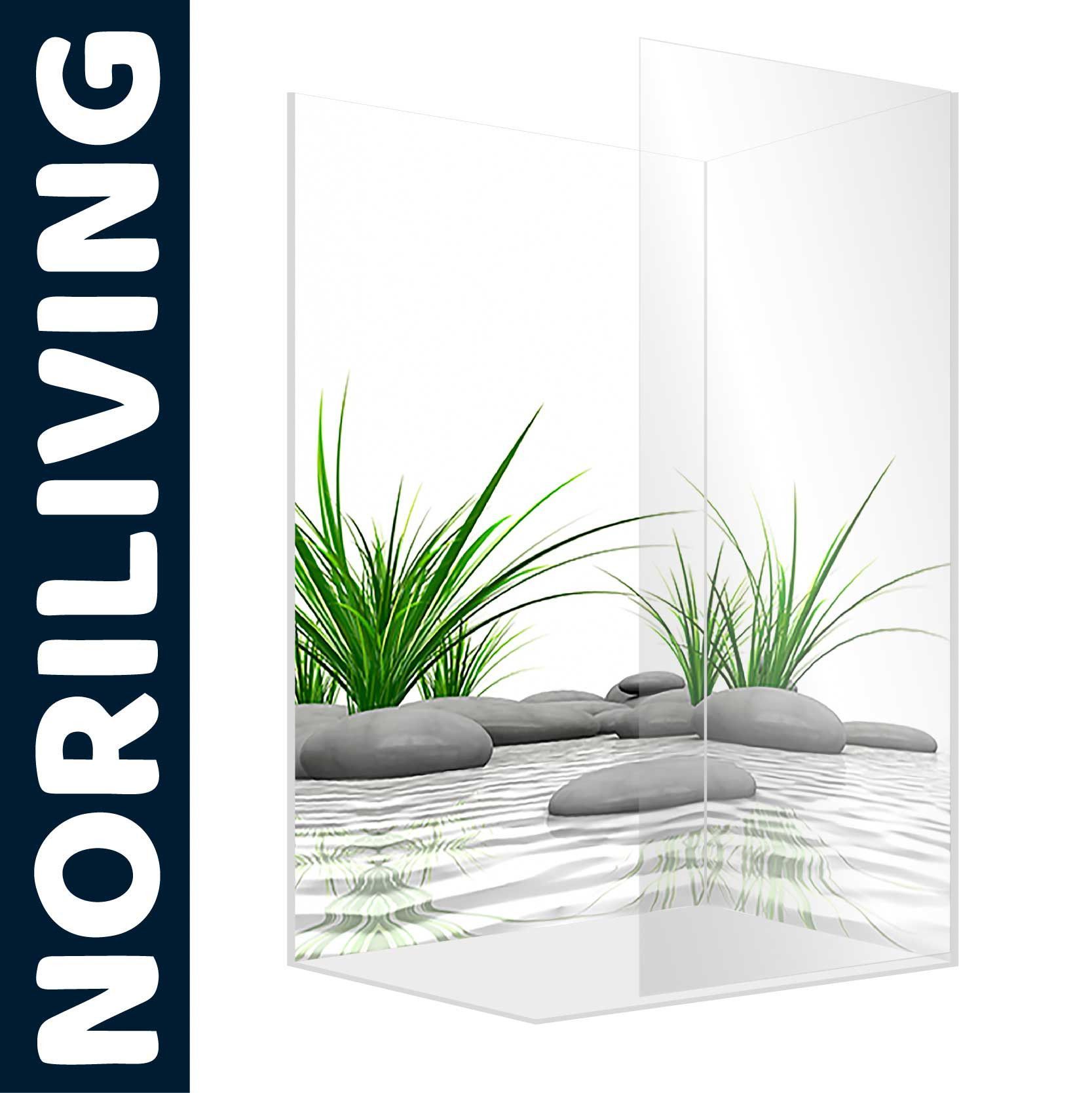 Eck Duschrückwand Rückwand Dusche Alu Fliesenersatz ZEN Steine Gras Motiv 200cm hoch