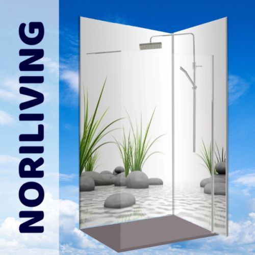 Eck / Einzel Duschrückwand Rückwand 60-90cm x 2,03 M ZEN Steine Gras Motiv