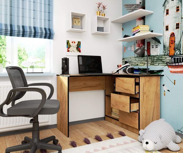 Eck-Schreibtisch AKORD B16 rechts in der Farbe Eiche Craft B124 x H77 x T85 cm