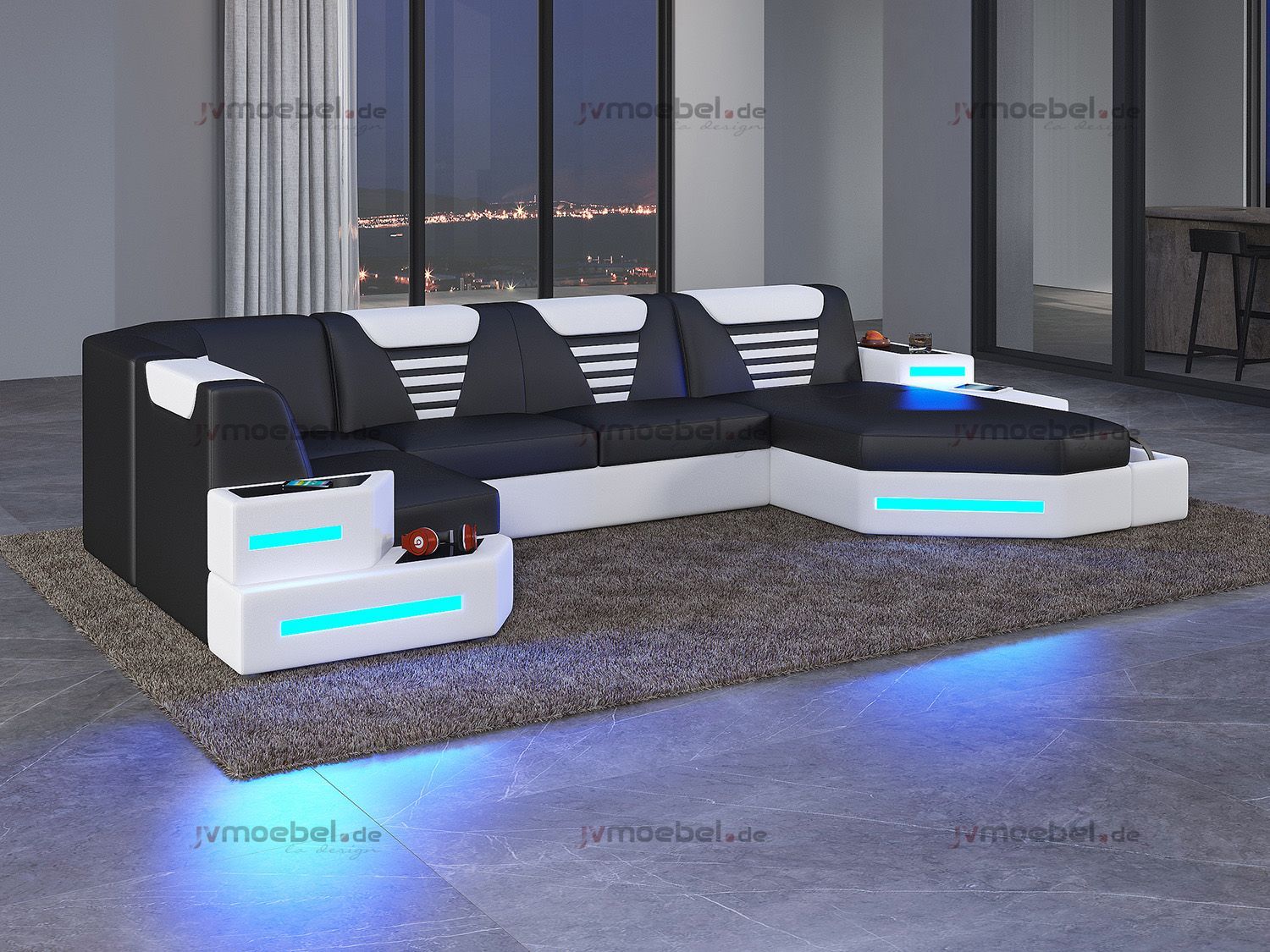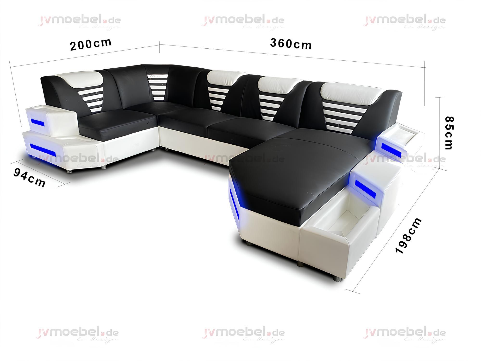 Eck Sofa Couch Polster Ecke Leder Couchen Wohnlandschaft U Form + LED