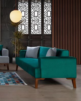 Turkis Dreisitzer Samt Couch Wohnzimmer Couchen Sofa Elegante Sitzmöbel Sofa Neu