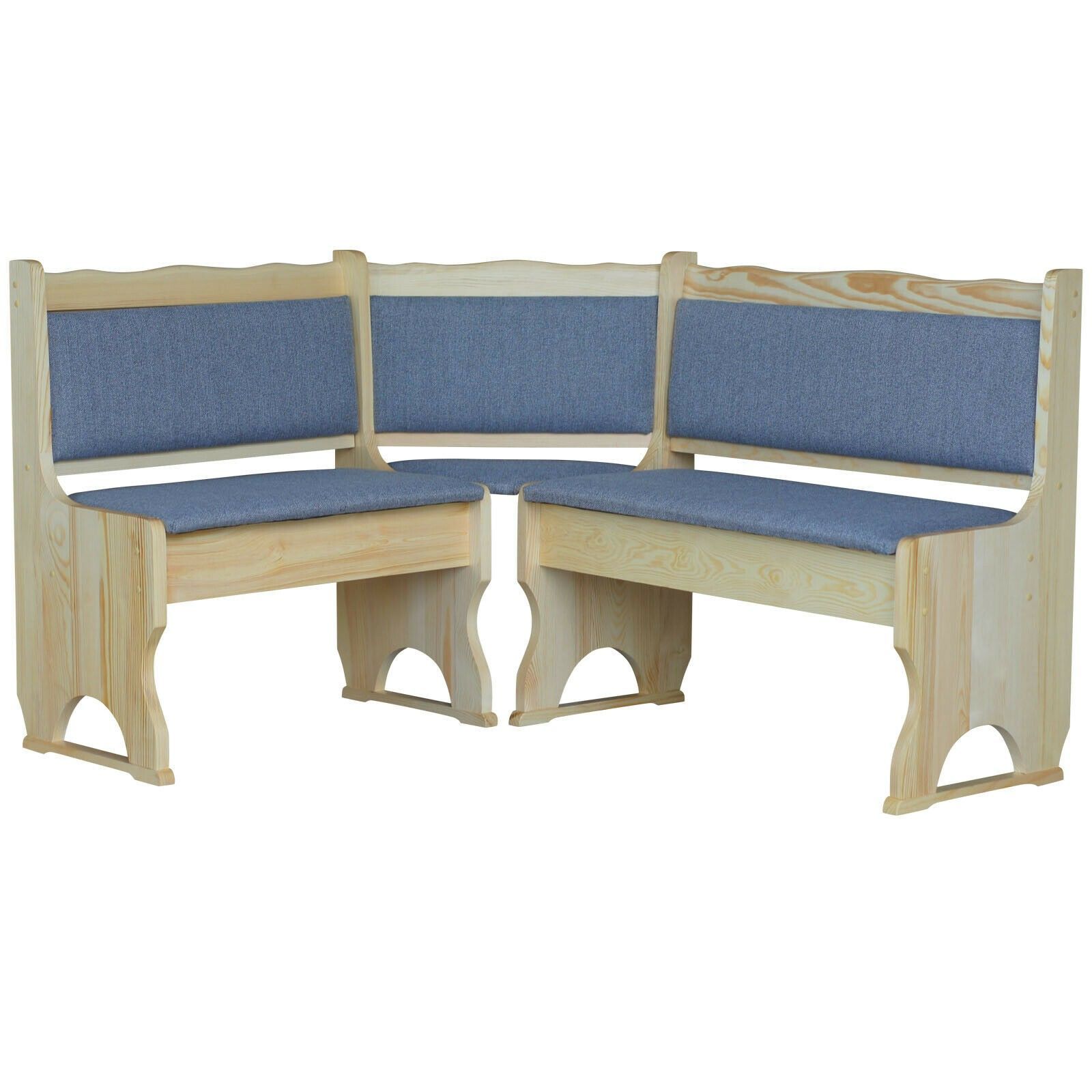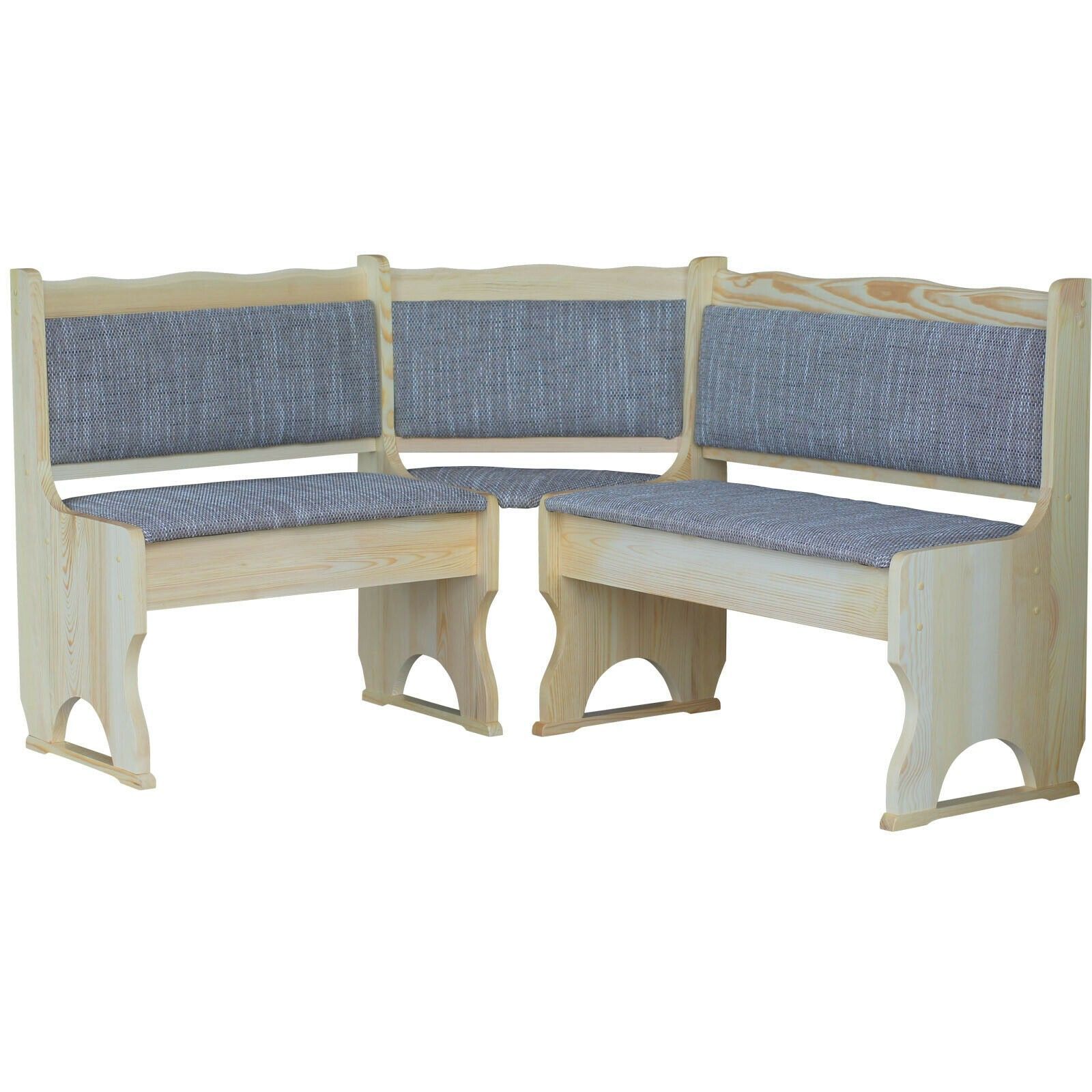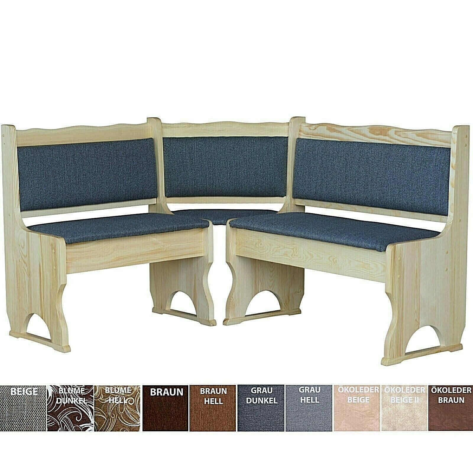 Eckbank Kiefer Lackiert Holz mit Polsterung Massivholz Grau, Braun, Ökoleder - Neu